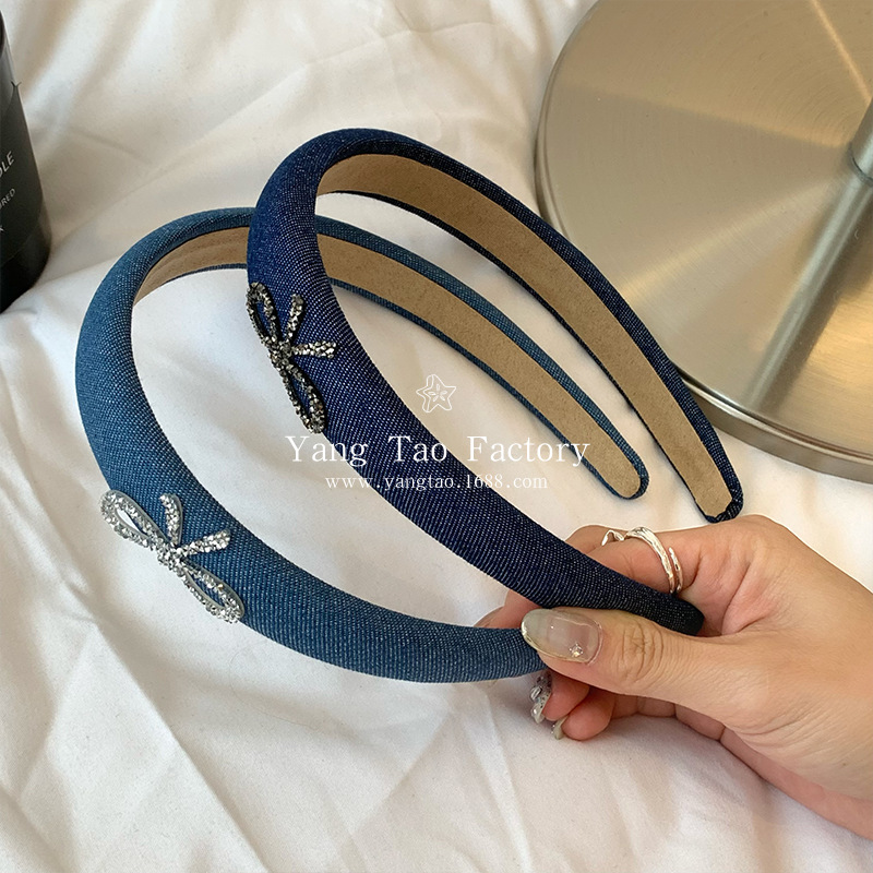 데님 패브릭 설탕 깨진 다이아몬드 정제 된 헤어 밴드 한국 수입 된 새로운 올 매치 깨진 헤어 압력 헤드 밴드 헤어 액세서리