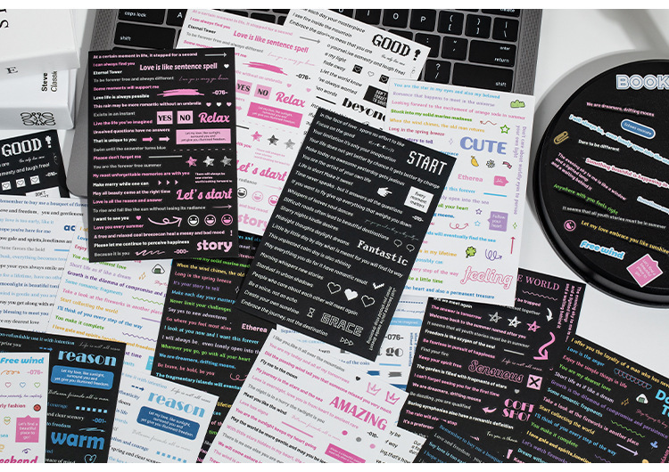 라인 시리즈 사이의 언어 유휴 폐기물 스티커 바람 텍스트 소재 손 계정 휴대 전화 케이스 다시 카드 장식 콜라주스토어 가기