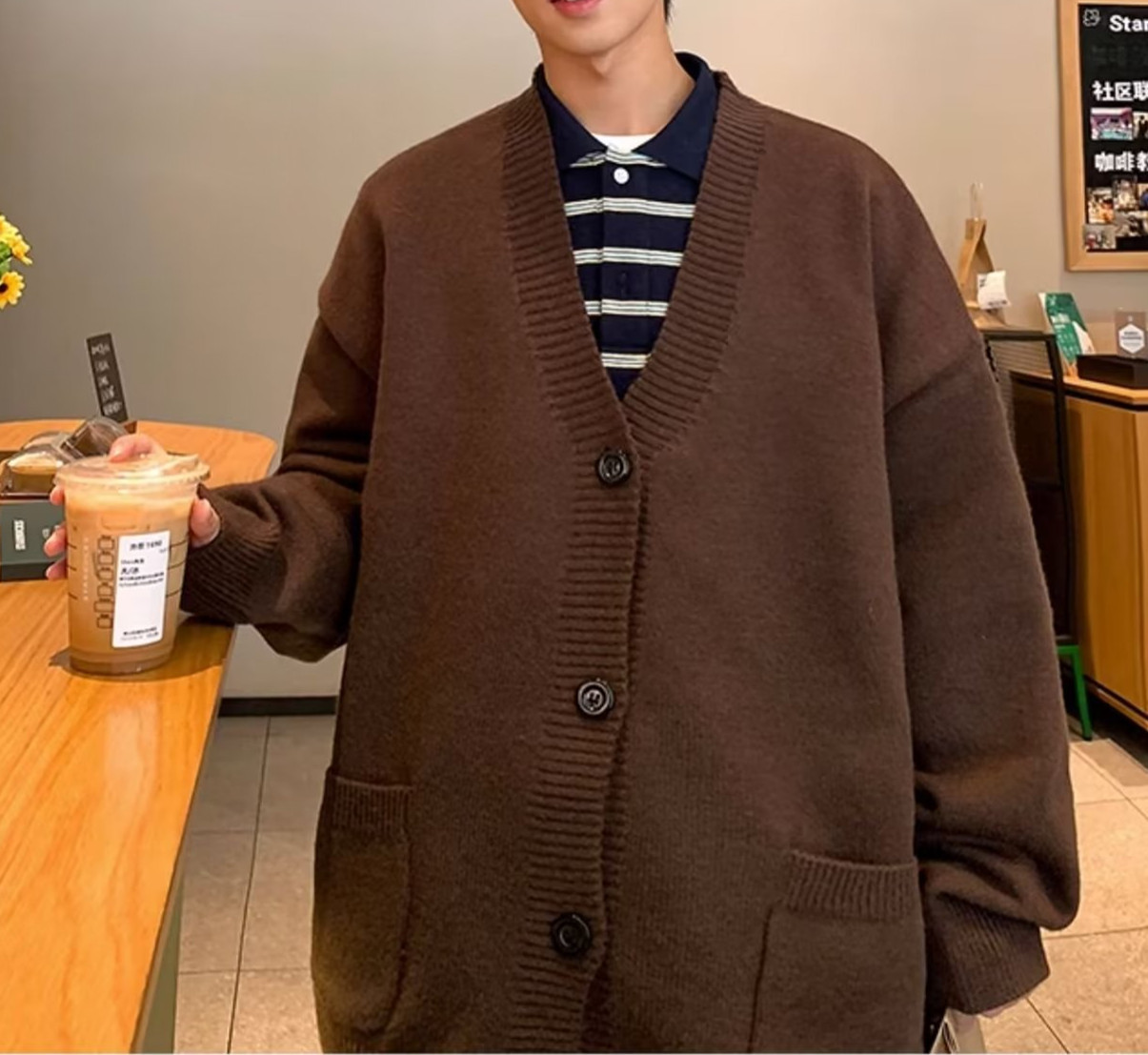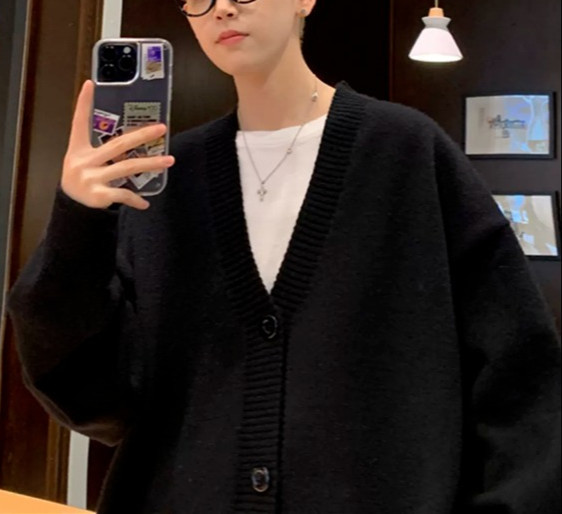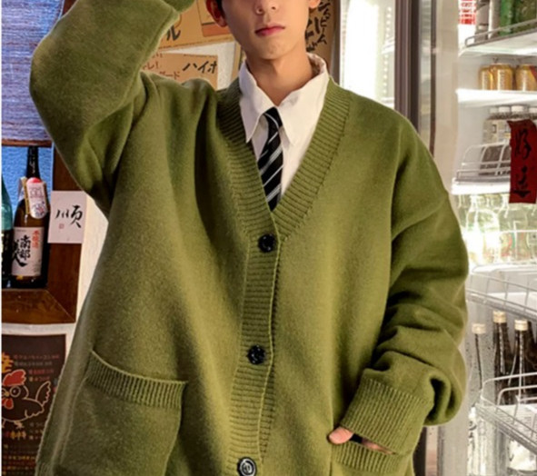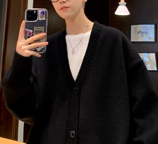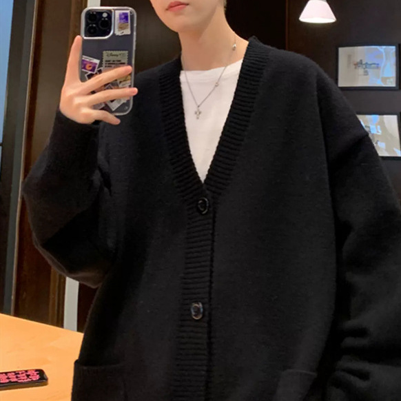 V-Neck 카디건 니트 스웨터 남자의 예술적 가을과 겨울 홍콩 스타일 게으른 스타일 니트 스웨터 유행 루즈 아우터 스웨터스토어 가기