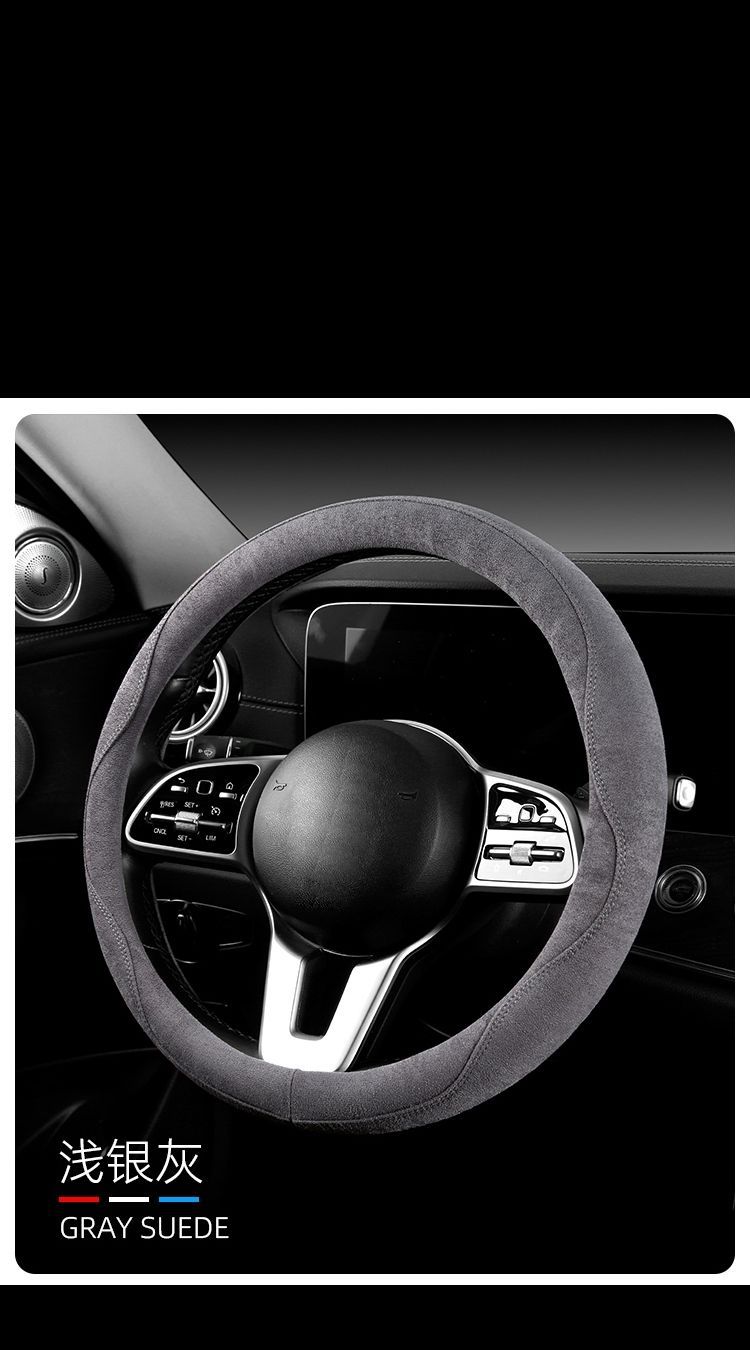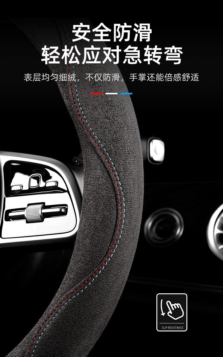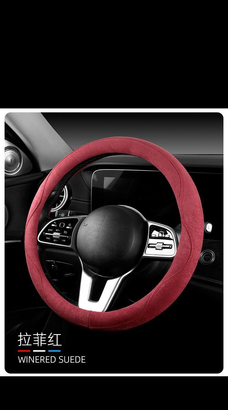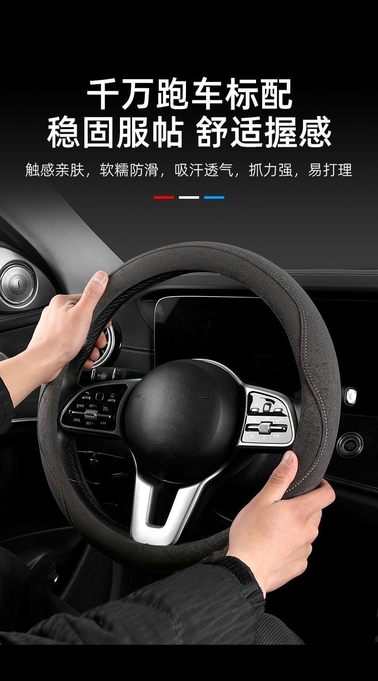 컬러 라인이 있는 스티어링 휠 커버, 스웨이드 소재로 사계절 사용 가능, 땀 흡수, 미끄럼 방지, 편안하고 통기성이 좋은 스티어링 휠 커버, 심플한 디자인스토어 가기