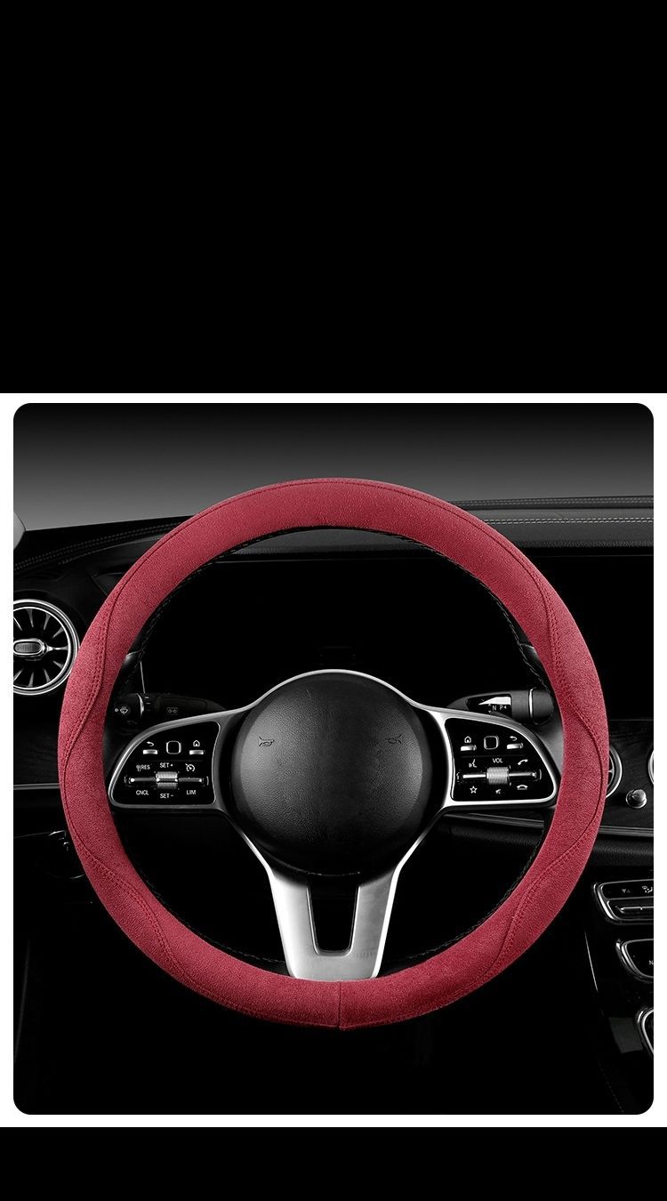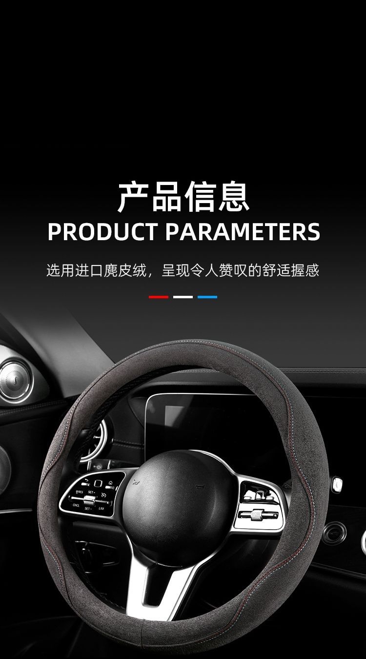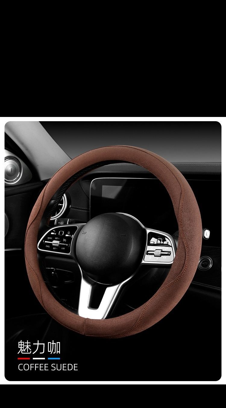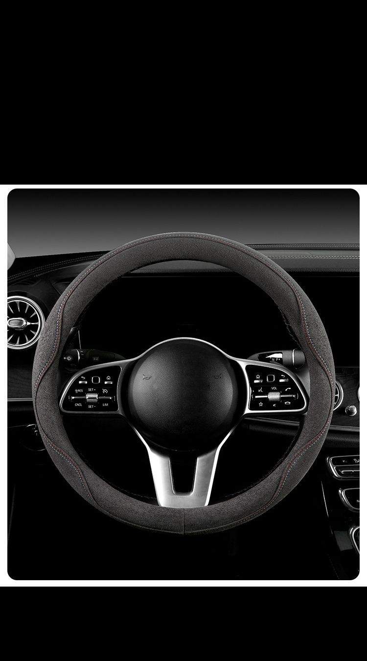 컬러 라인이 있는 스티어링 휠 커버, 스웨이드 소재로 사계절 사용 가능, 땀 흡수, 미끄럼 방지, 편안하고 통기성이 좋은 스티어링 휠 커버, 심플한 디자인스토어 가기