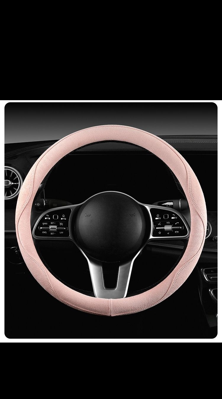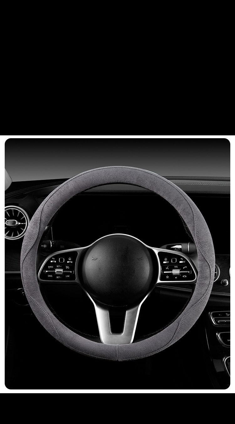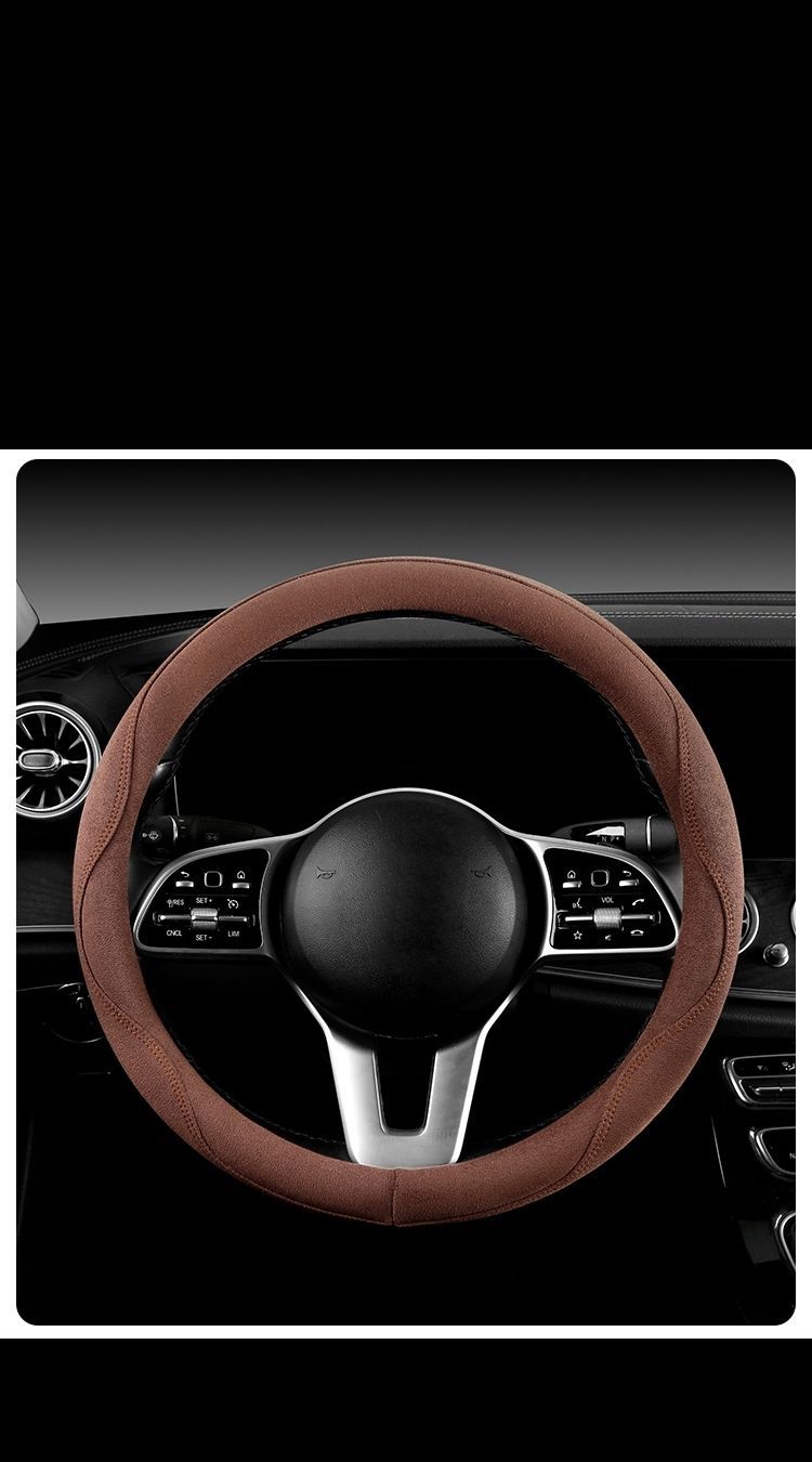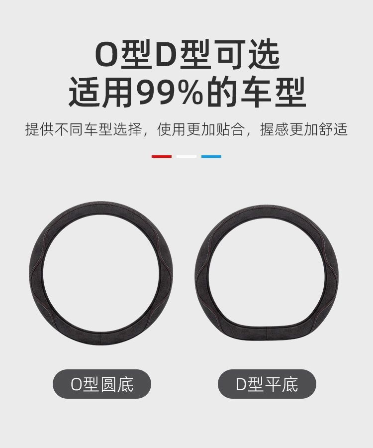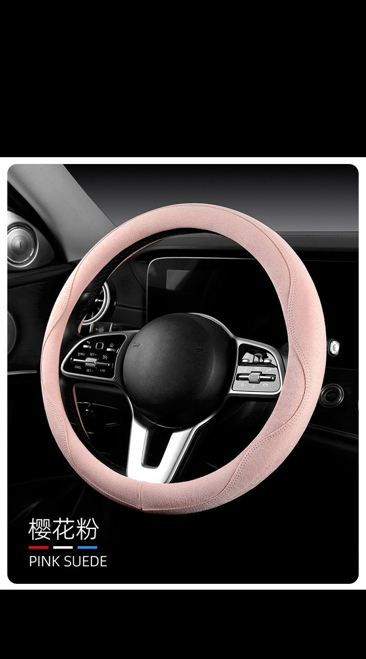 컬러 라인이 있는 스티어링 휠 커버, 스웨이드 소재로 사계절 사용 가능, 땀 흡수, 미끄럼 방지, 편안하고 통기성이 좋은 스티어링 휠 커버, 심플한 디자인스토어 가기