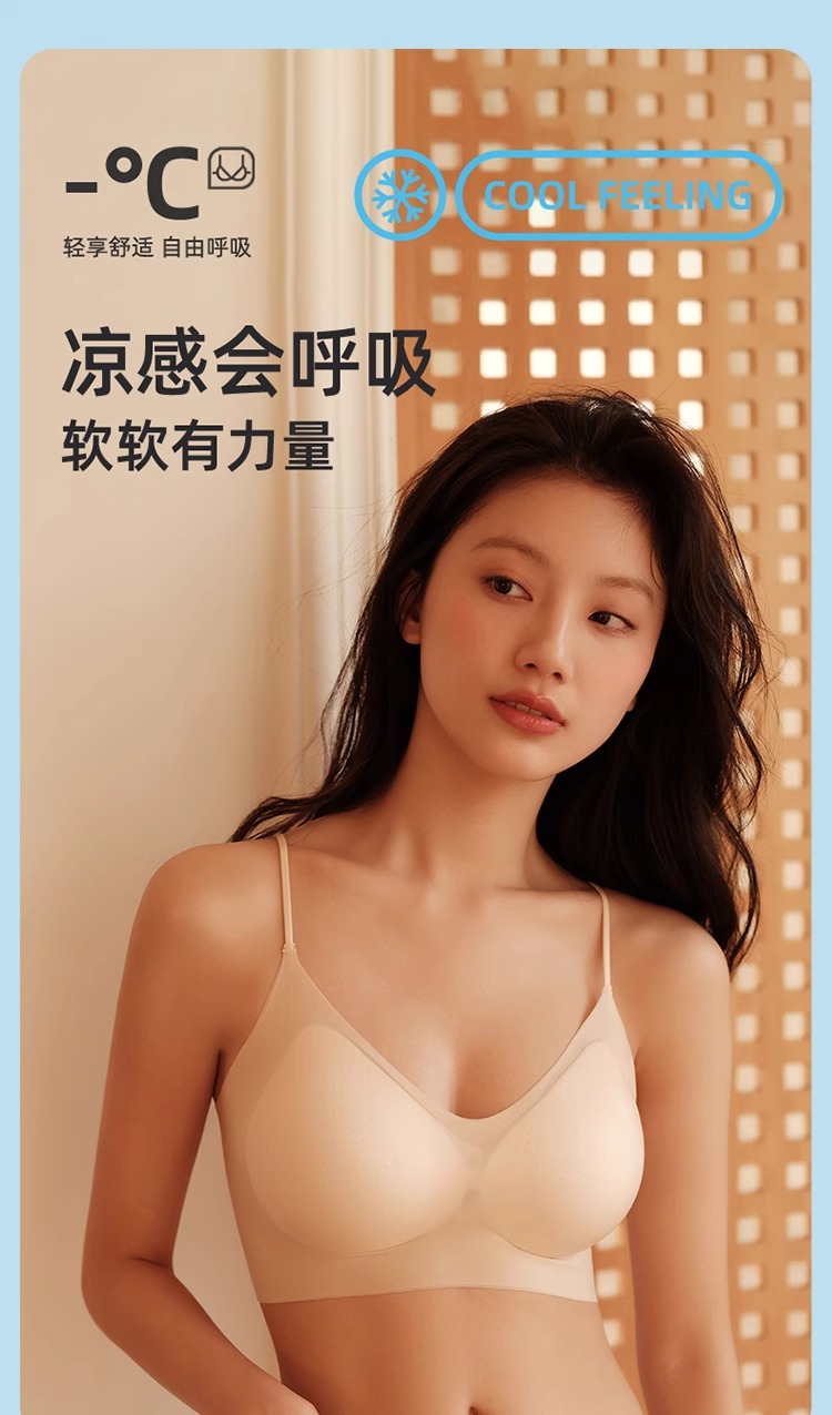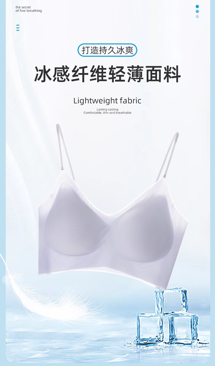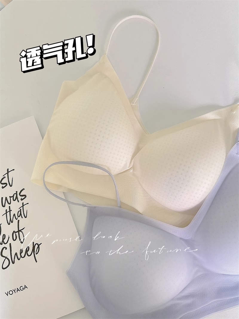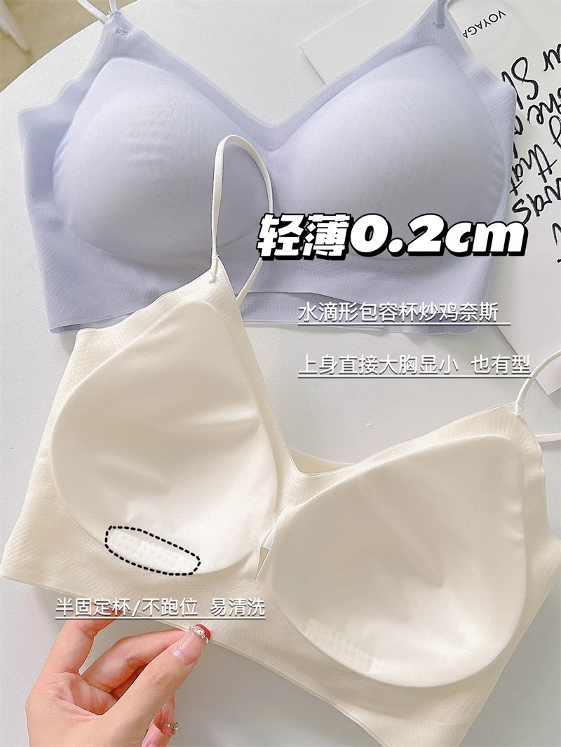 에어컨 브래지어 ~ 원활한 속옷 여성용 얇은 큰 가슴 작은 쿨 고정 컵 얇은 어깨 스트랩 조끼 편안한 브래지어