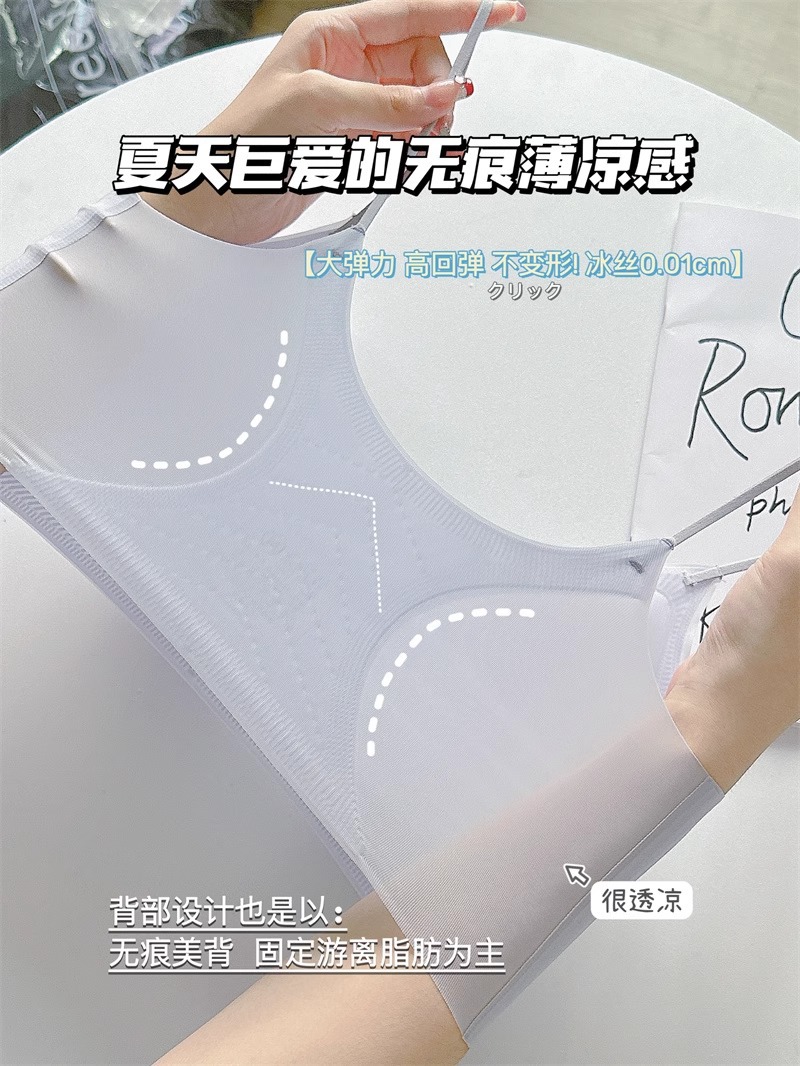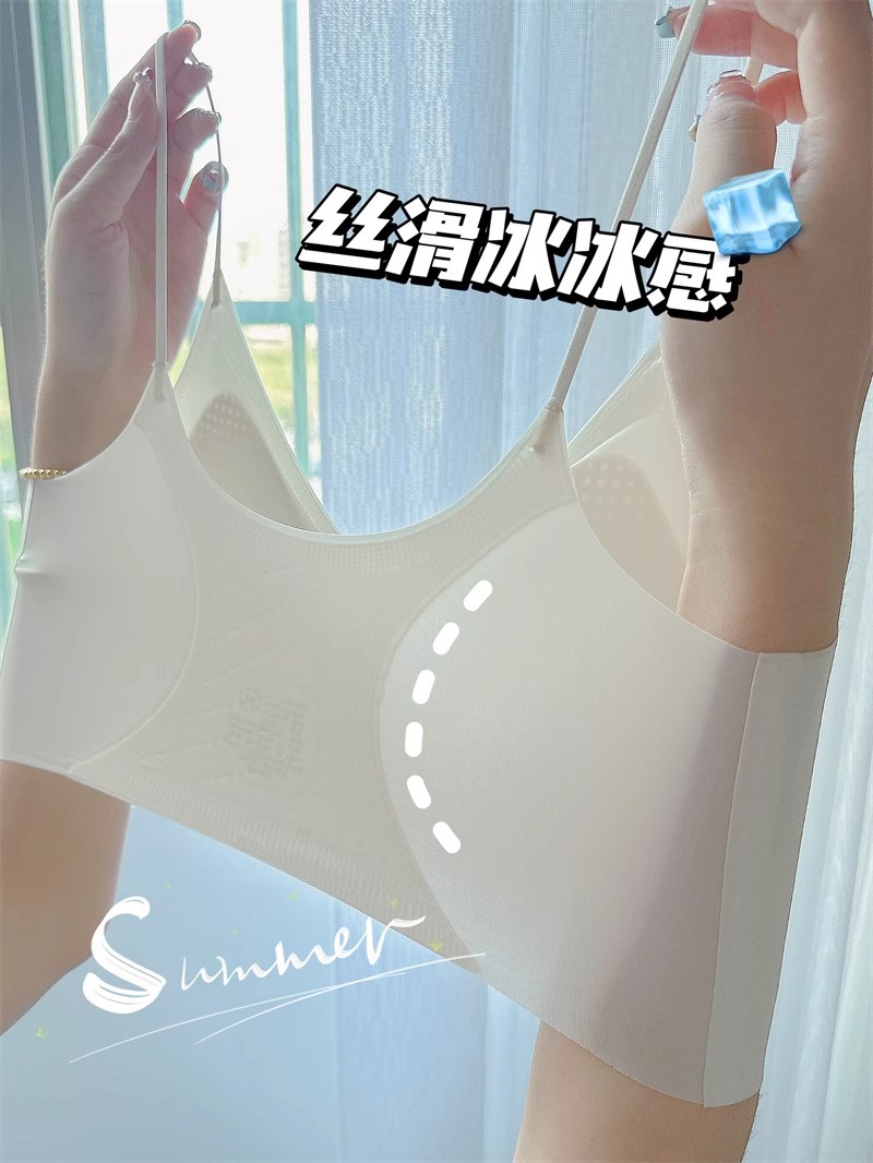 에어컨 브래지어 ~ 원활한 속옷 여성용 얇은 큰 가슴 작은 쿨 고정 컵 얇은 어깨 스트랩 조끼 편안한 브래지어스토어 가기