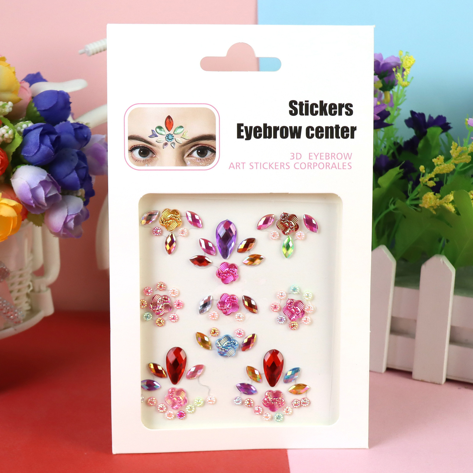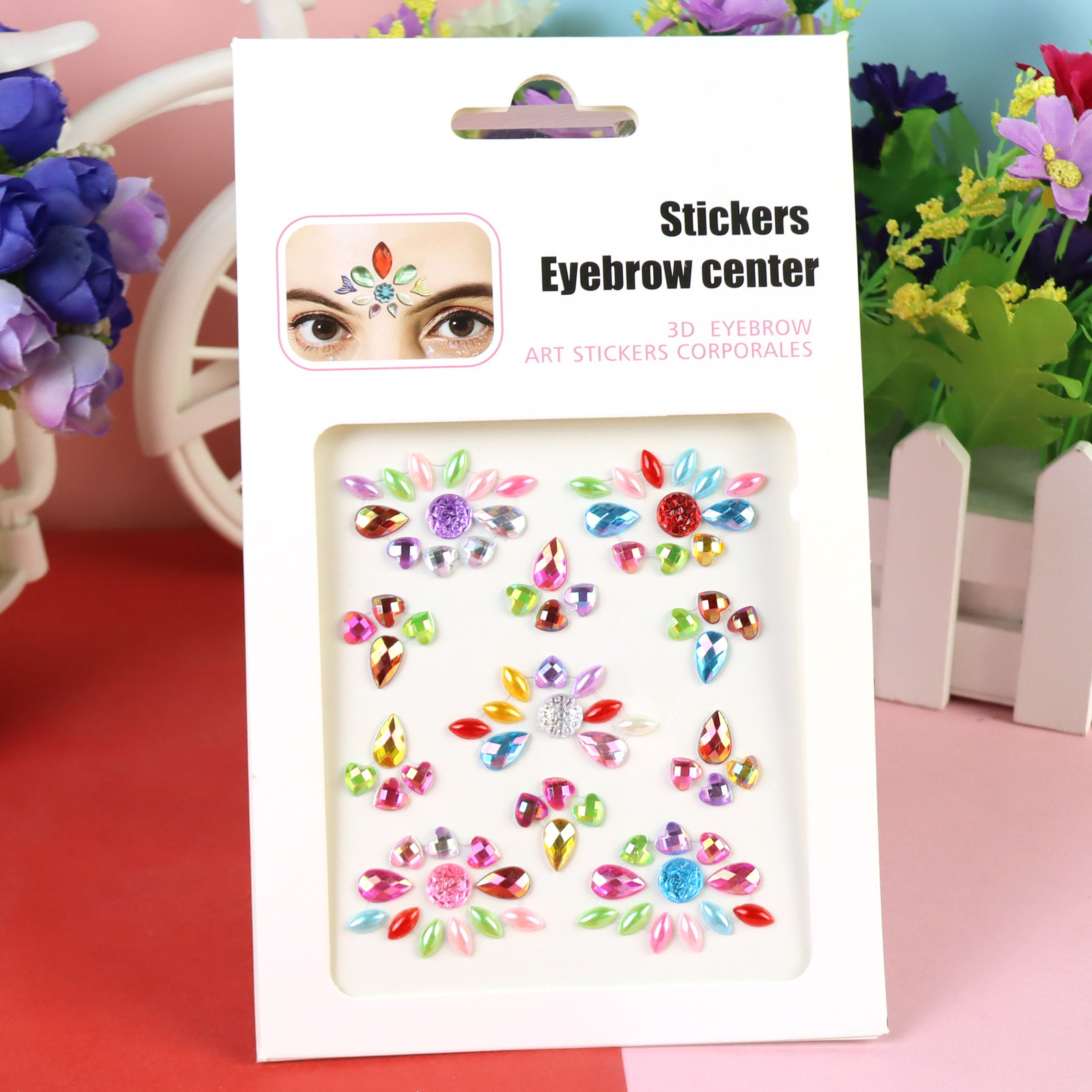 국경 간 AB 컬러 다이아몬드 아이 메이크업 액세서리 얼굴 메이크업 다이아몬드 스티커 어린이 무대 공연 얼굴 스티커 크리스탈 보석 스티커스토어 가기