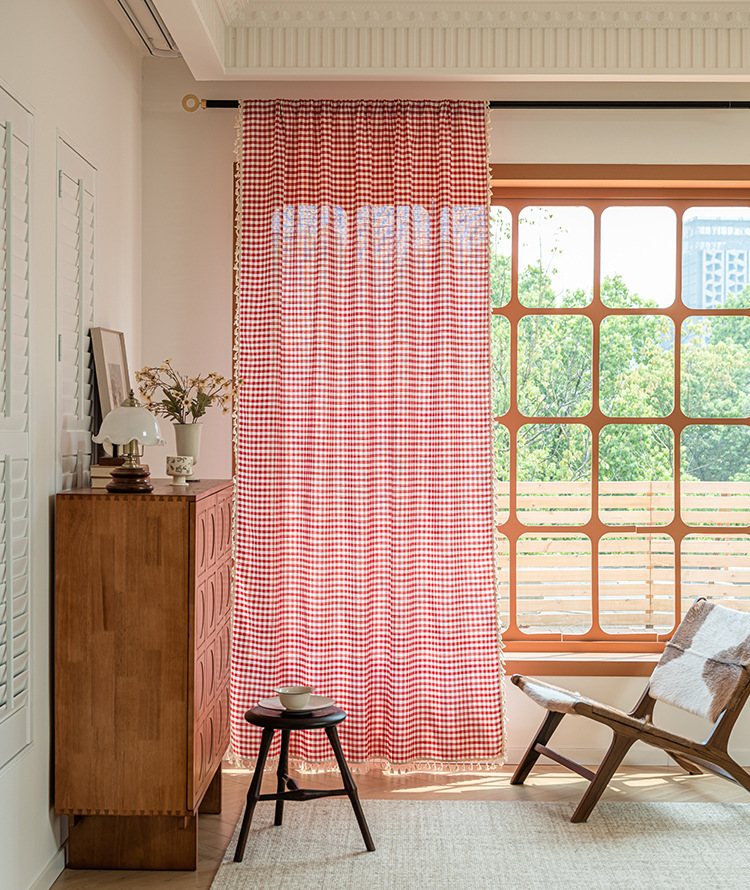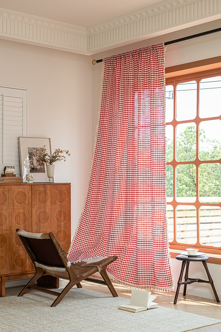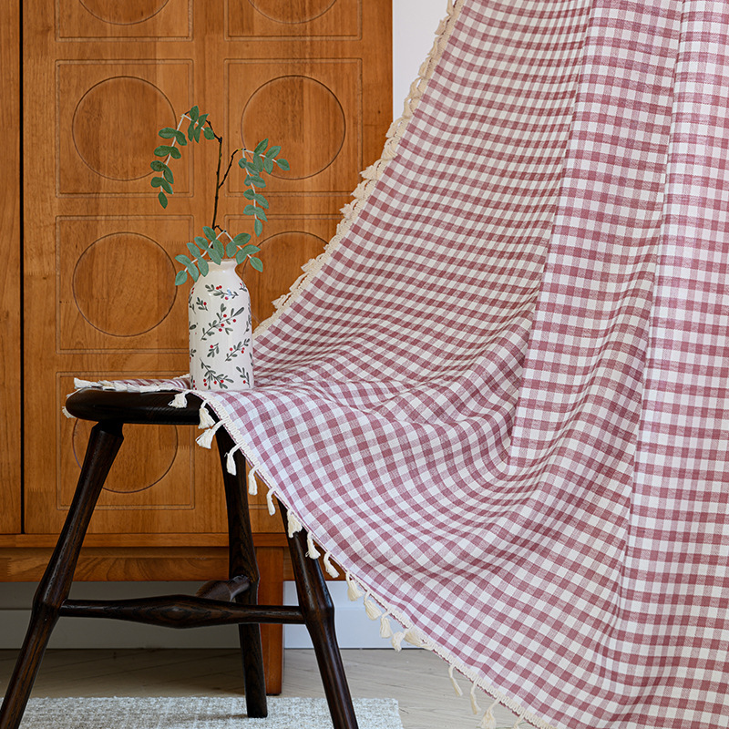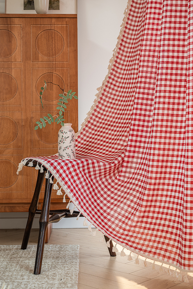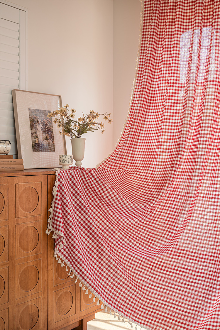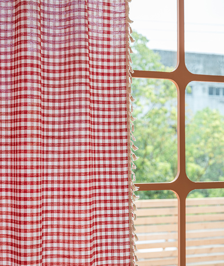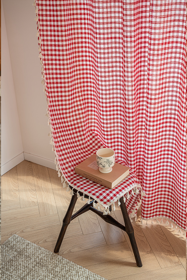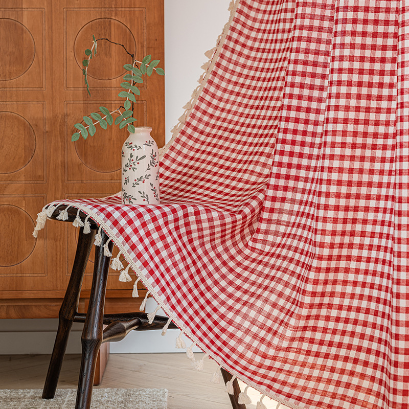 커튼 빨간 격자 무늬 술 일본 공주 커튼 예술적 작은 창 주방 커튼 면화 반 음영 베이 창 공장 도매스토어 가기
