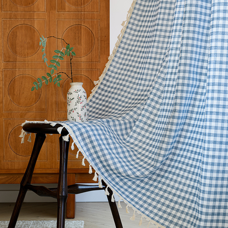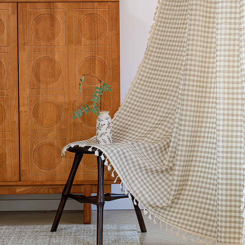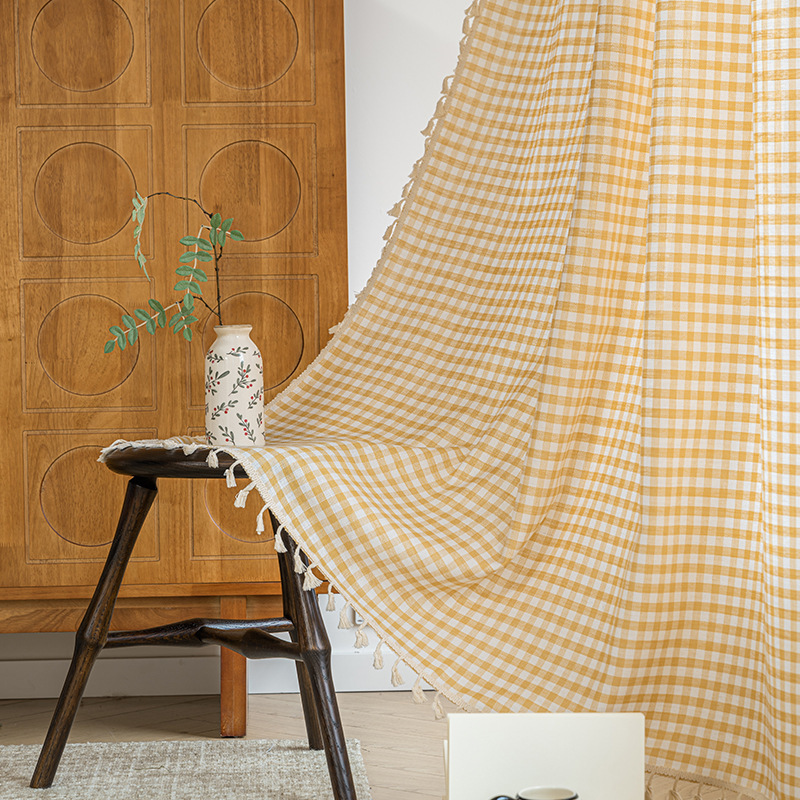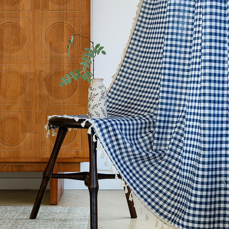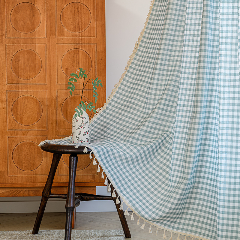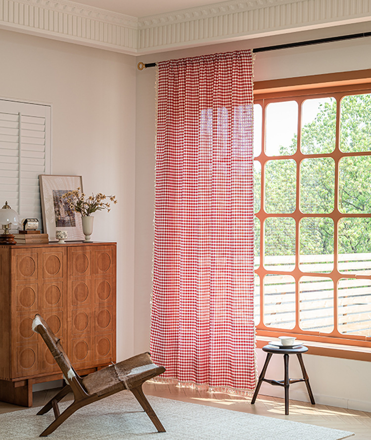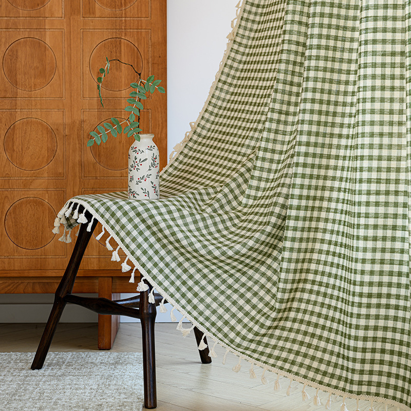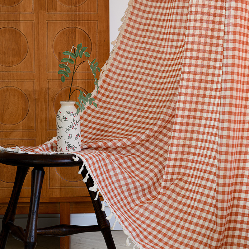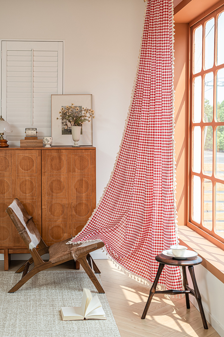 커튼 빨간 격자 무늬 술 일본 공주 커튼 예술적 작은 창 주방 커튼 면화 반 음영 베이 창 공장 도매스토어 가기