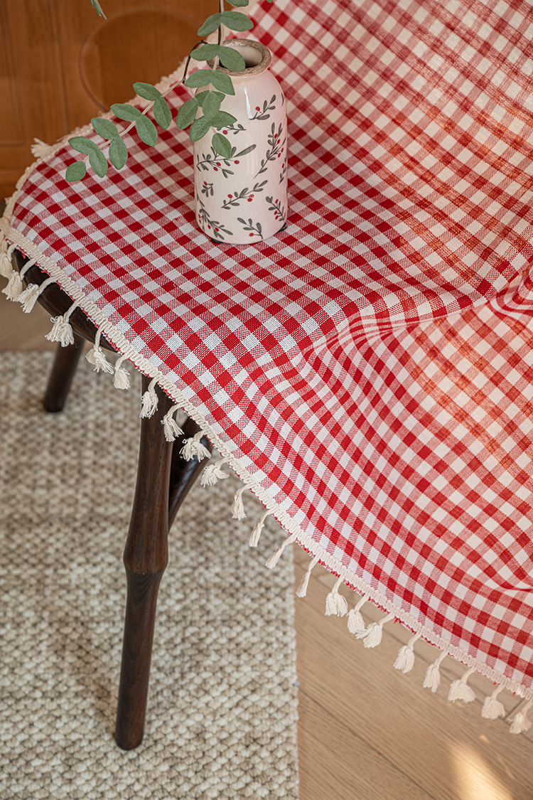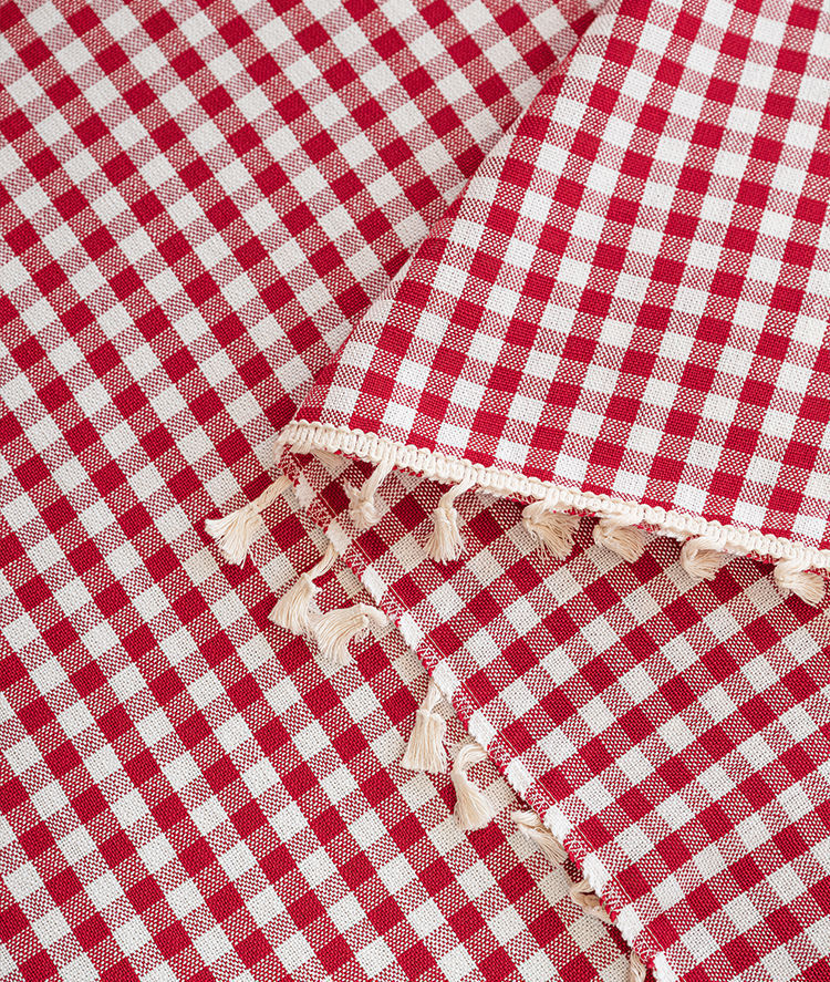 • 면과 린넨의 레드 미니 그리드(스루로드형)