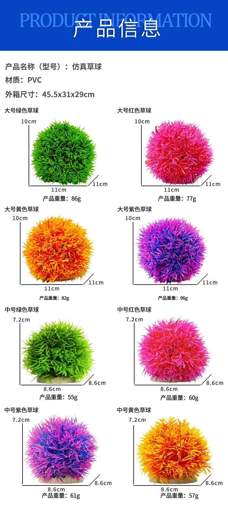 국경 간 공장 직접 새로운 조경 어항 장식 플라스틱 시뮬레이션 물 잔디 꽃 공 잔디 공 잔디 공 잔디 잔디 잔디 잔디
