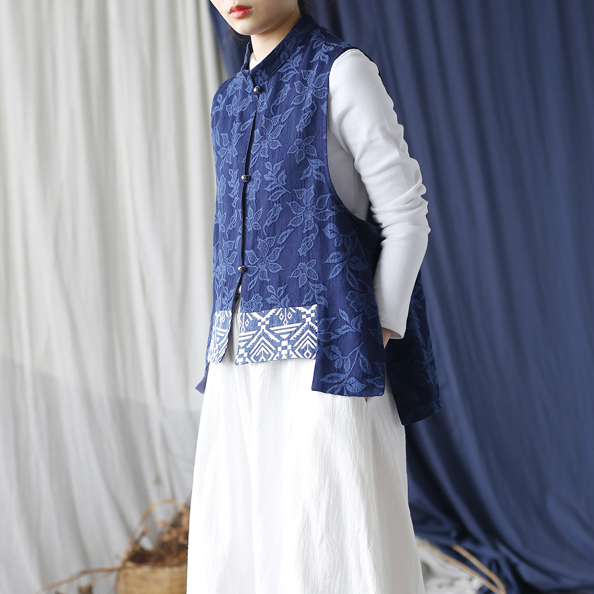 2463 Xi Mo Original Cotton and Linen Autumn Artistic Retro Loose Women's Vest Collar Jacquard Vest