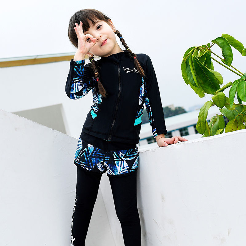 2019 어린이 수영복 여아 스플릿 지퍼 빅 키즈 선 스크린 다이빙 세트 여아 소년 비치 휴가 수영복