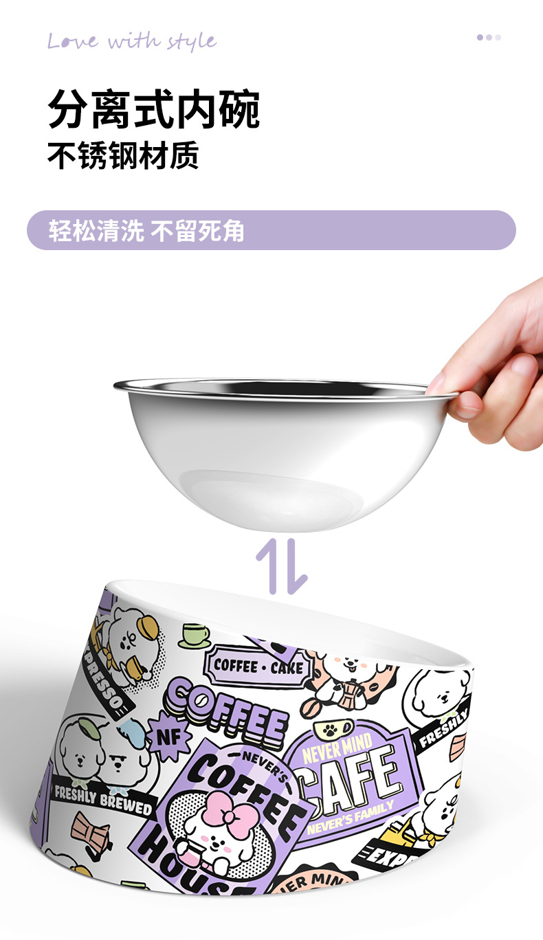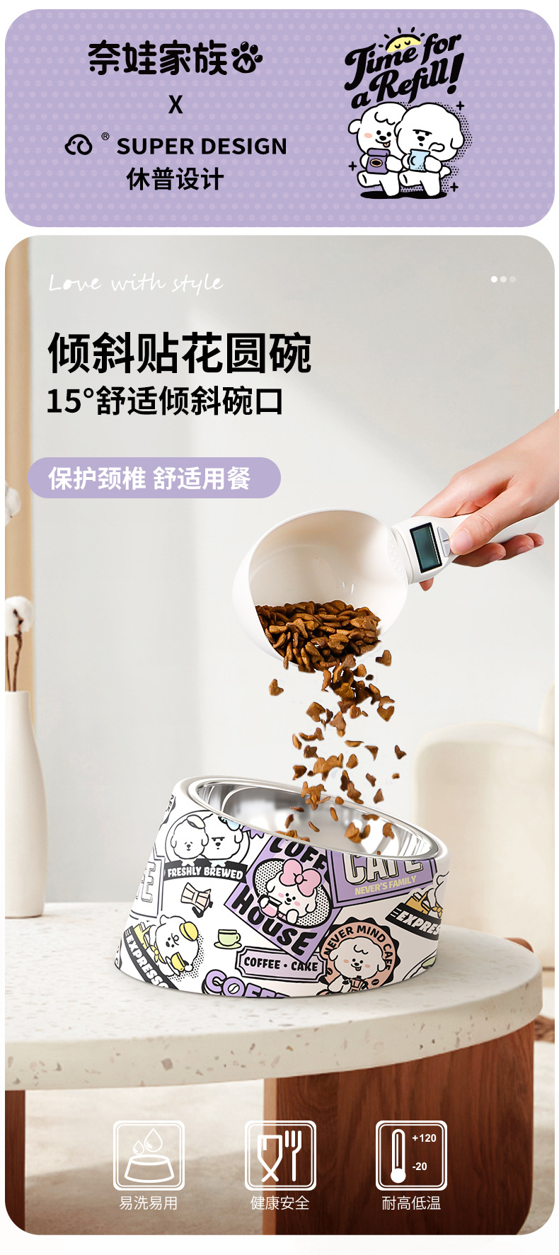 휴프나이바 패밀리 공동 브랜드 펫샵 엄선 제품 데칼 장식 경추 보호 기능이 있는 고양이와 강아지 공용 사료 및 물통 고양이 밥그릇