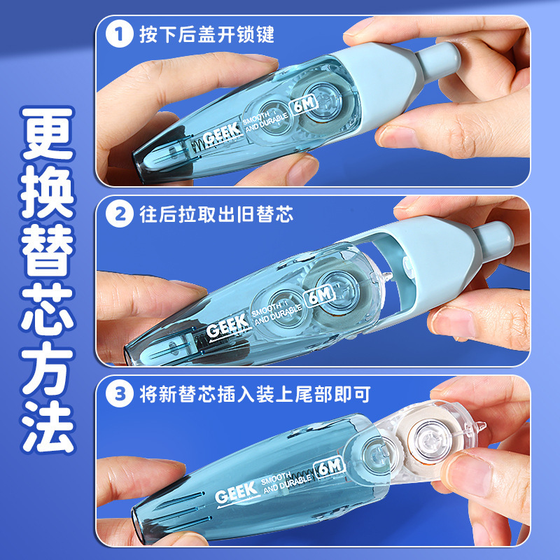 크리에이티브 프레스 보정 테이프 세트 보정 테이프는 초등학생 특수 블랙 기술 보정 테이프를위한 코어 보정 테이프로 교체 할 수 있습니다.스토어 가기