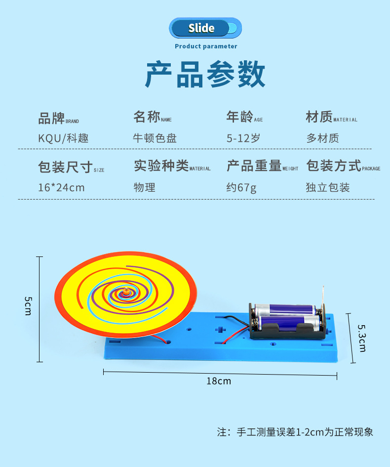 과학 실험 diy 뉴턴 컬러 플레이트 시각 임시 현상 7 색 플레이트 기술 소규모 생산 재료 패키지 세트
