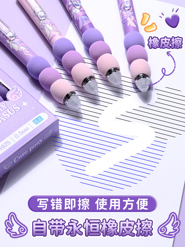 새로운 지울 수있는 펜 초등학교 귀여운 st 높은 가치의 부드러운 0.5 유니섹스 프레스 젤 펜 블랙