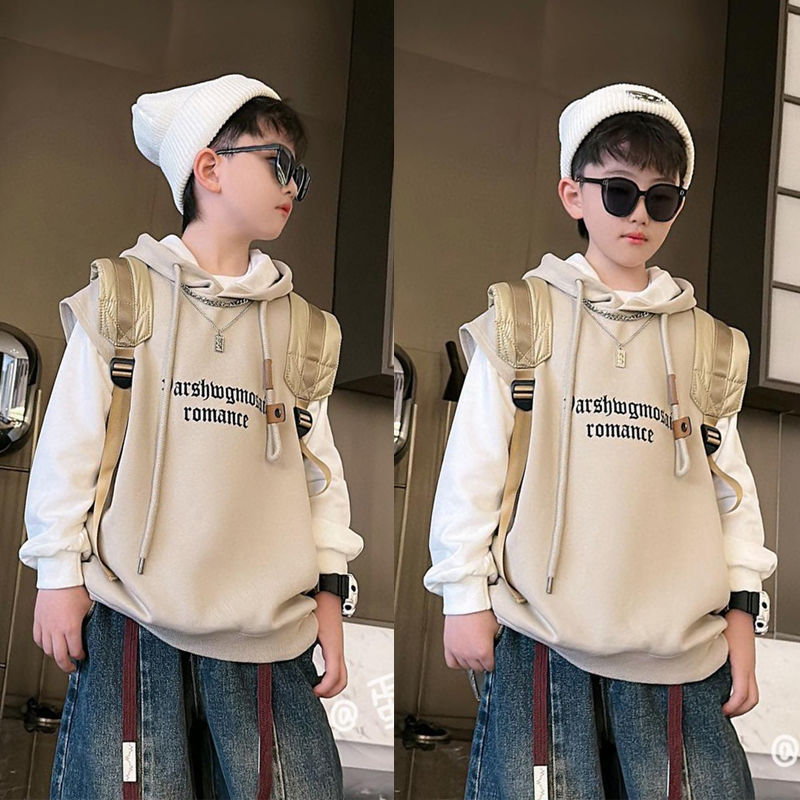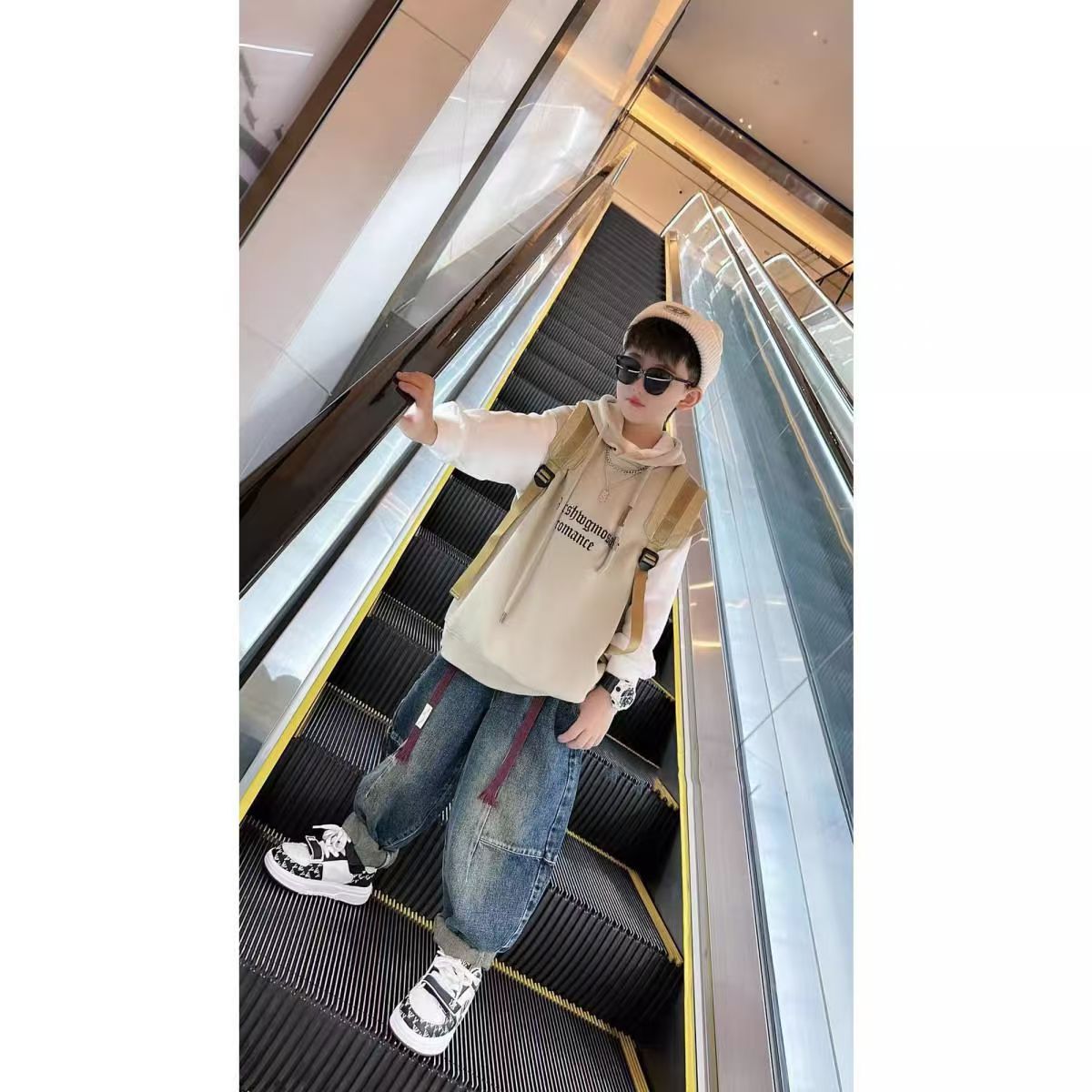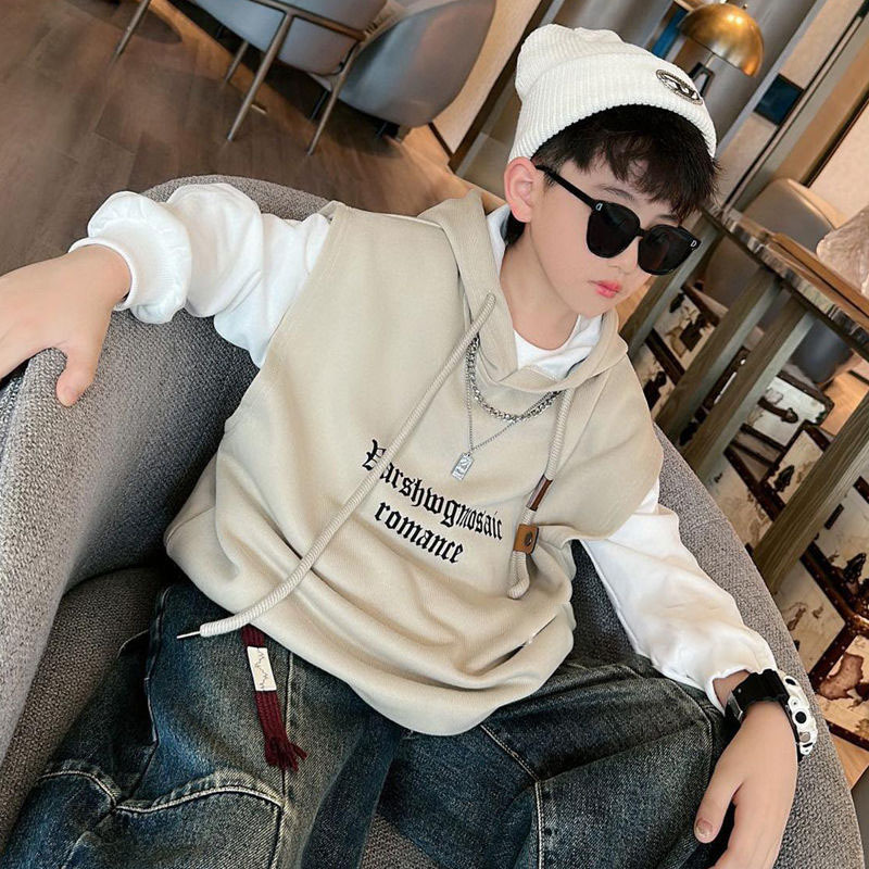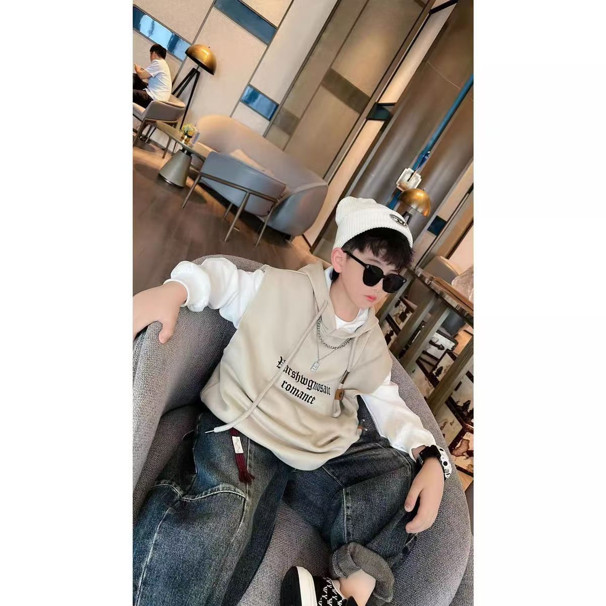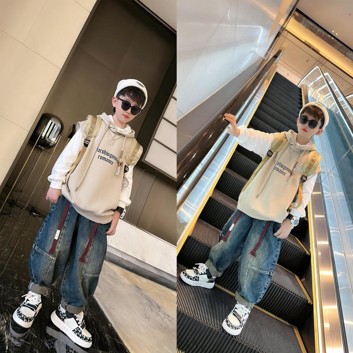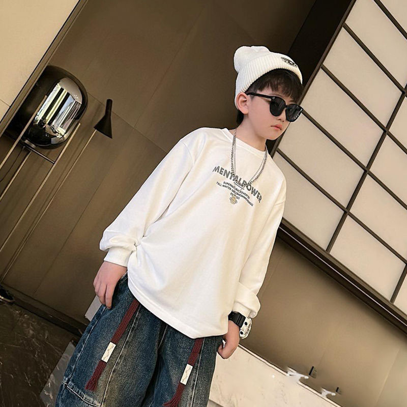 소년 2024 봄 새로운 어린이 흰색 편지 긴 소매 티셔츠 바닥 느슨한 패션 잘 생긴 스웨터 세트