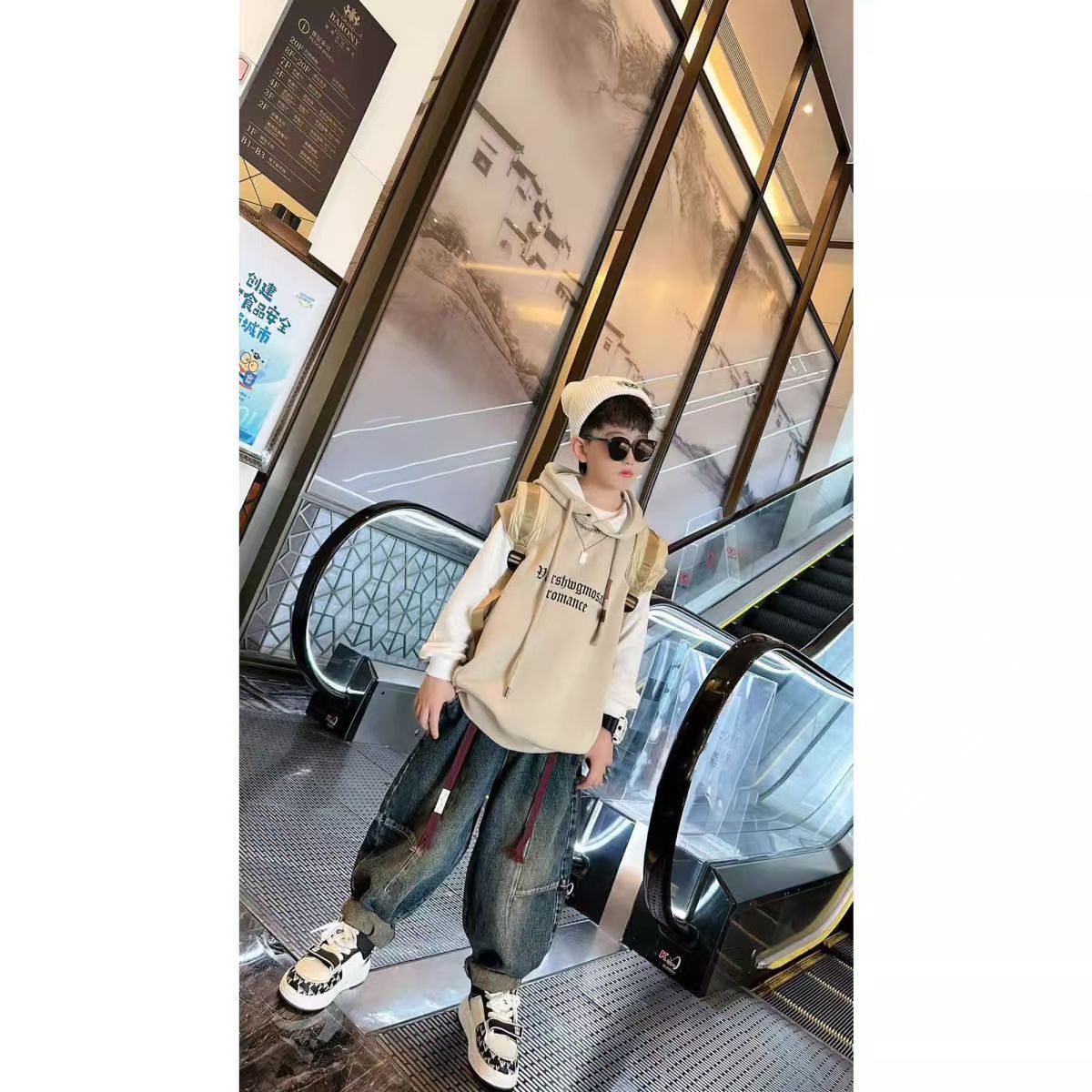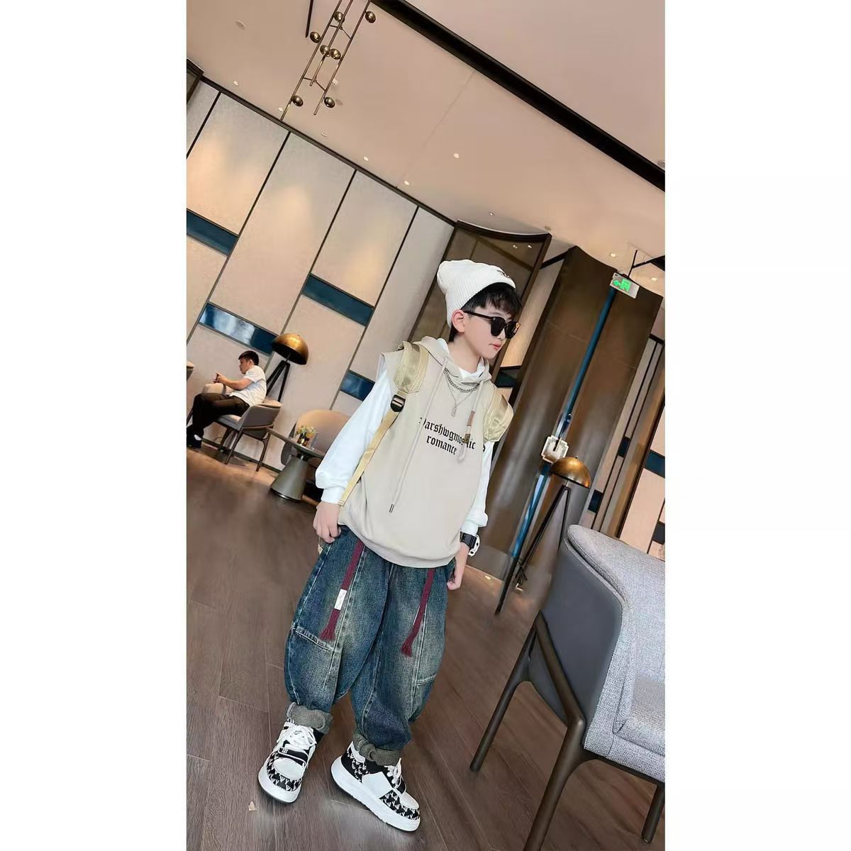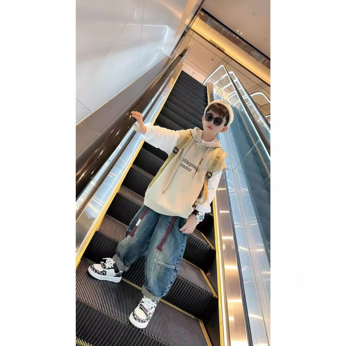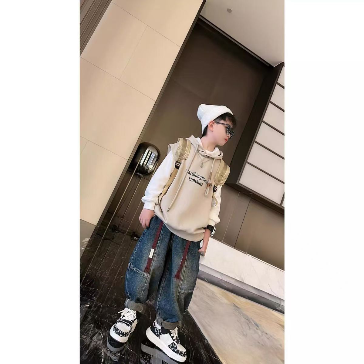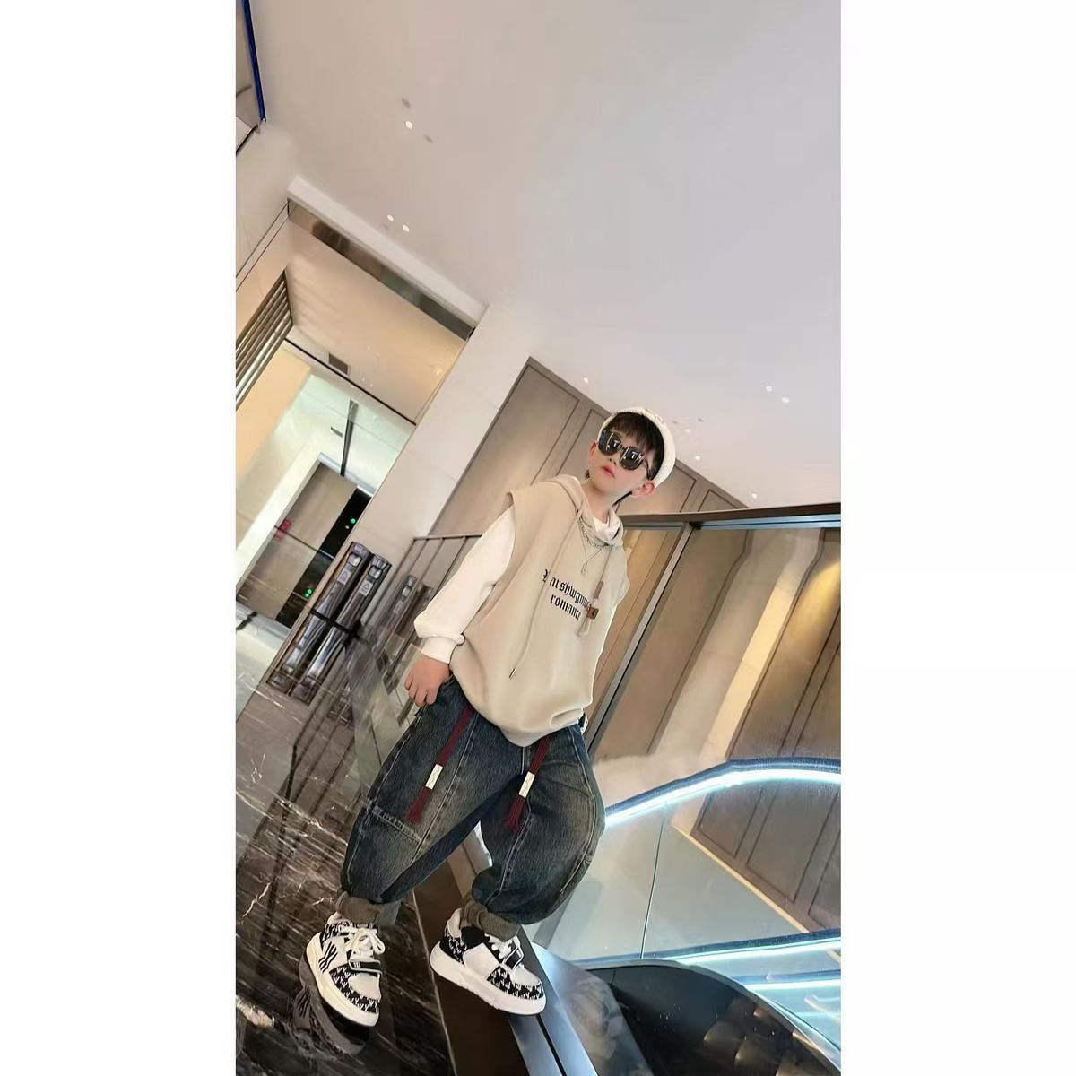 소년 2024 봄 새로운 어린이 흰색 편지 긴 소매 티셔츠 바닥 느슨한 패션 잘 생긴 스웨터 세트