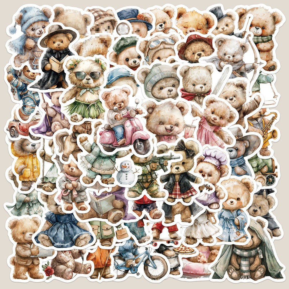 슈퍼 비용 효과적인 100 테디 베어 스티커 바람 페인트 곰 패턴 장식 손 계정 휴대 전화 케이스 배치스토어 가기
