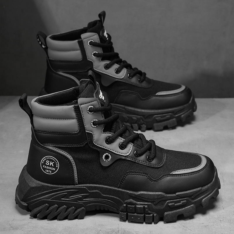 남자 신발 2024 가을 새로운 도착 남자 부츠 트렌디 올 매치 콕 신발 미끄럼 방지 두꺼운 밑창 마틴 부츠