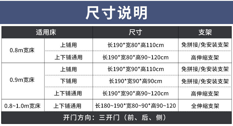 • 0.8m 침대 및 하부 침대용 범용 [고접이식] 3도어