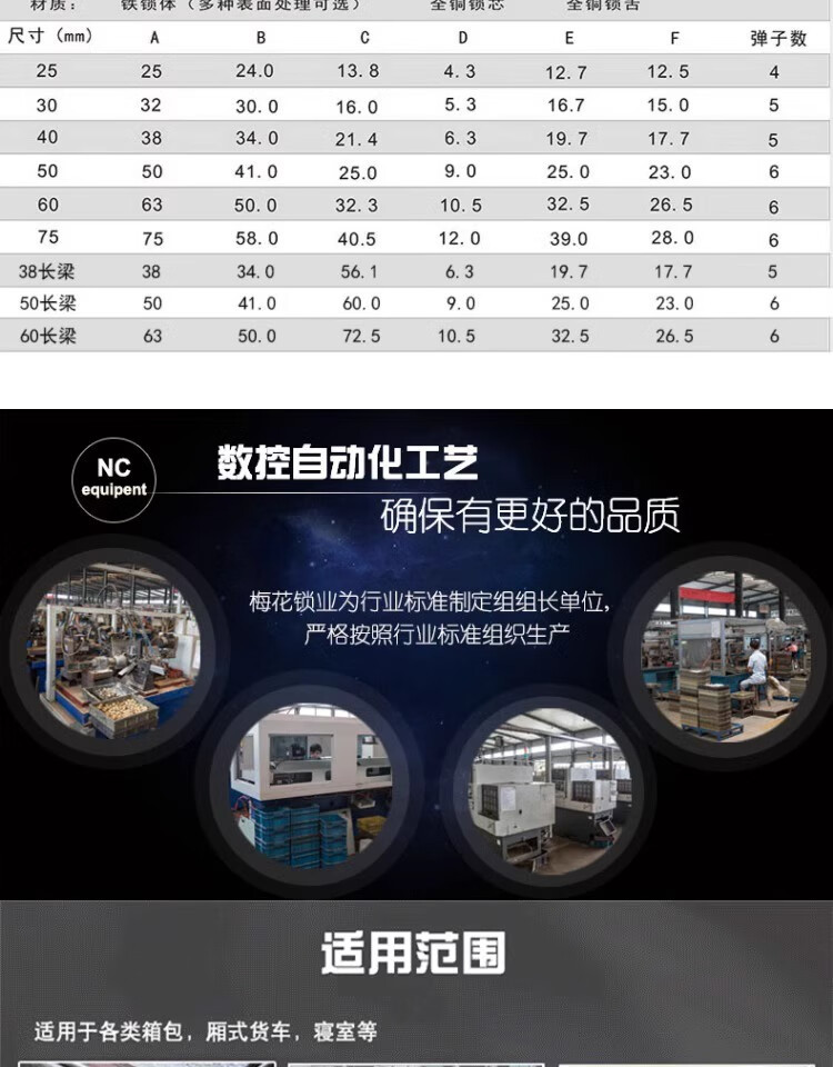 매화 도난 방지 방수 녹 방지 창고 작업장 도어 캐비닛 서랍 긴 빔 플라스틱 강철 자물쇠