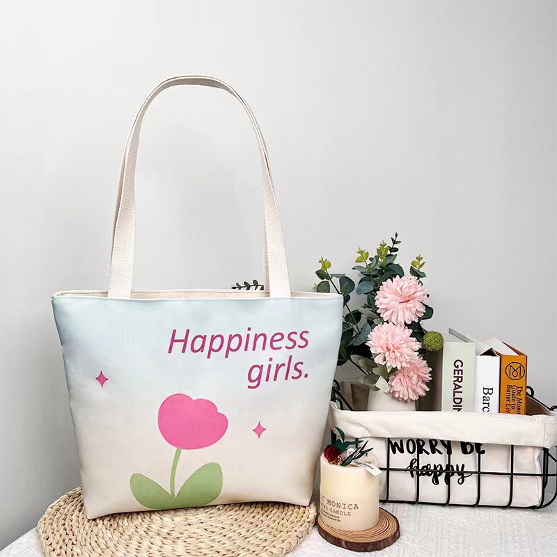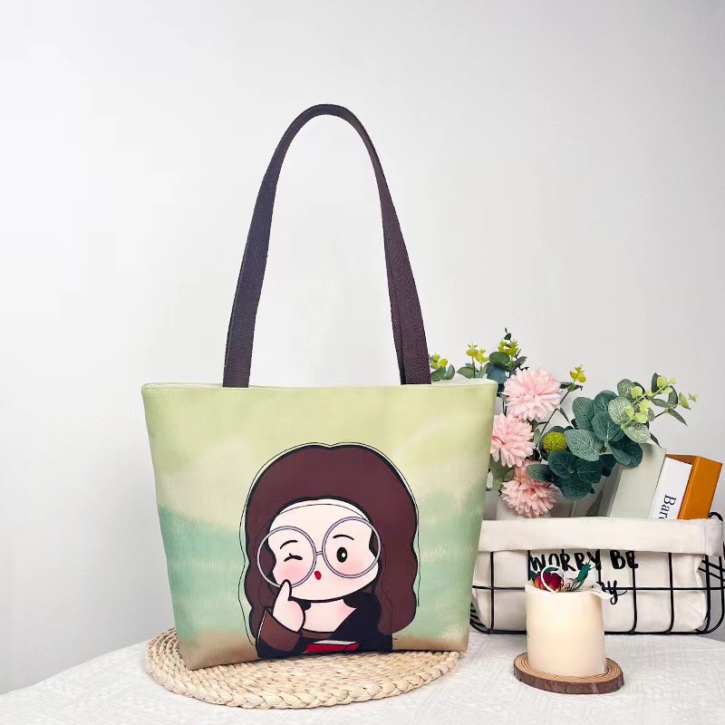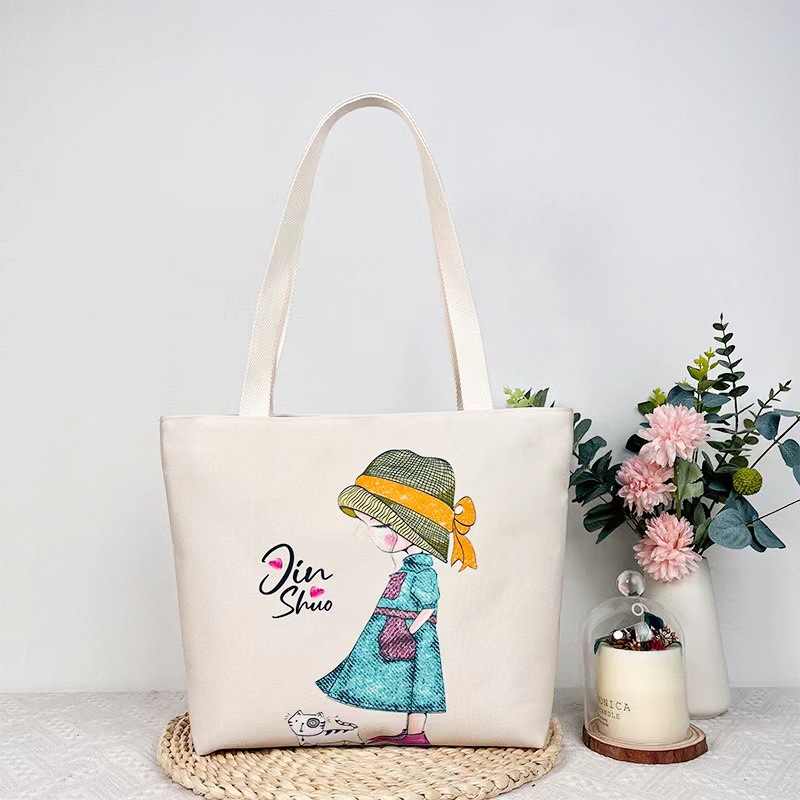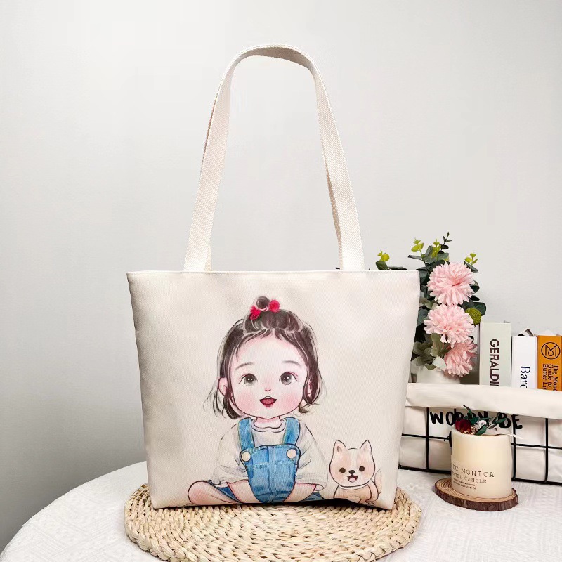 새로운 스타일 두꺼운 캔버스 양면 인쇄 봄과 여름 올 매치 예술적 인터넷 연예인 캔버스 가방 토트 백 대용량 숄더 백