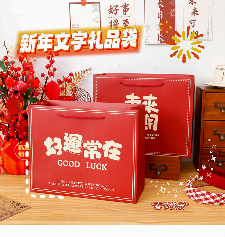 창조적 인 축제 텍스트 선물 가방 중국 스타일의 생일 선물 저장 가방 간단한 고급 두꺼운 종이 토트 백