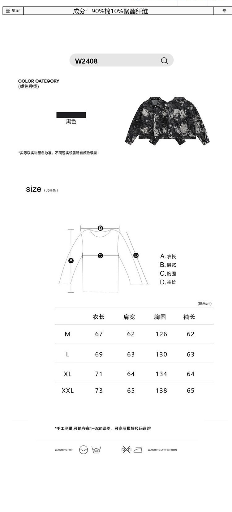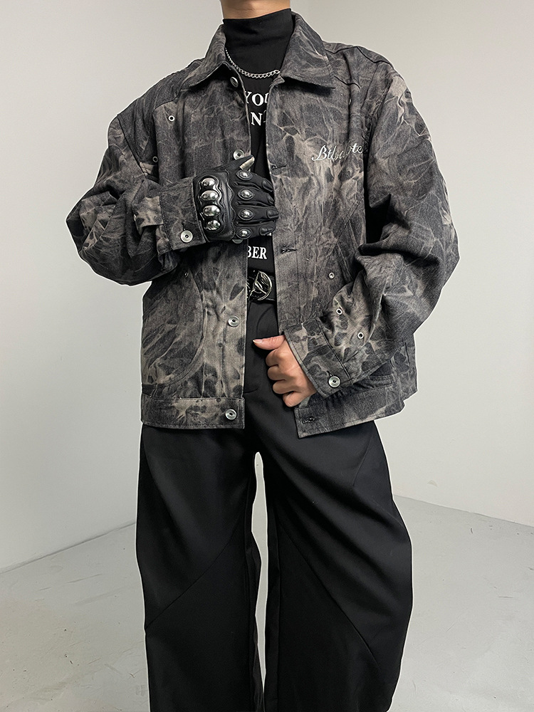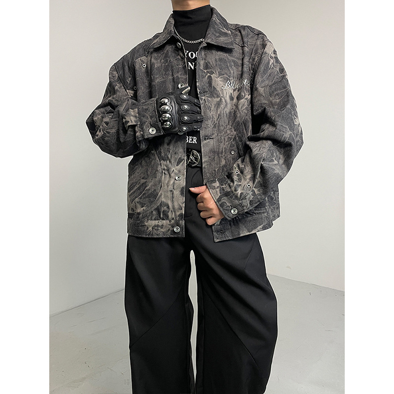 아메리칸 스타일 패션 브랜드 타이 염료 제거 디자인 짧은 데님 재킷 남성 레트로 느슨한 캐주얼 재킷 봄과 가을스토어 가기