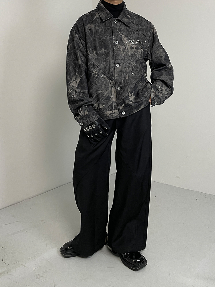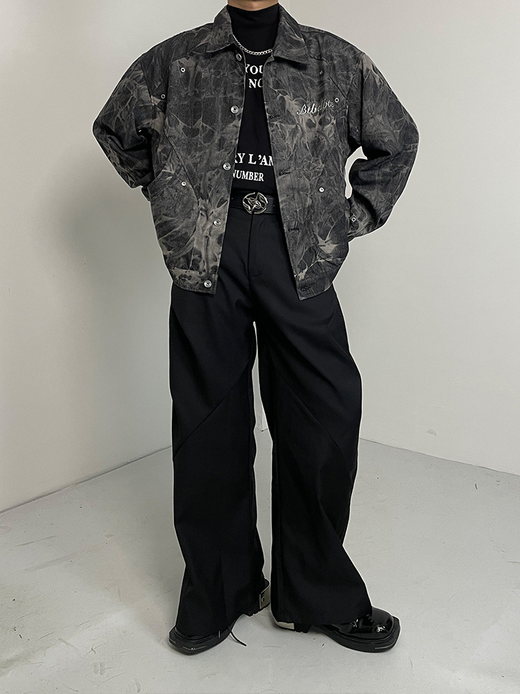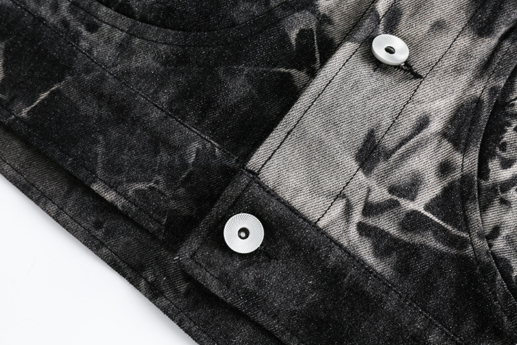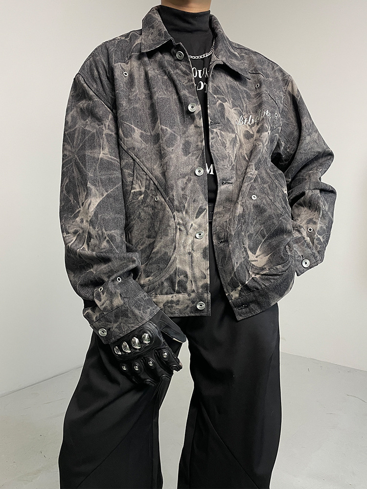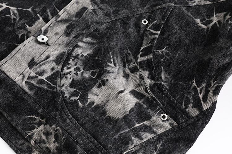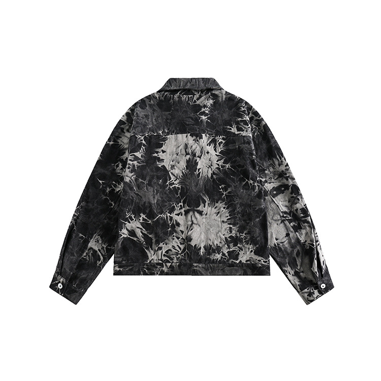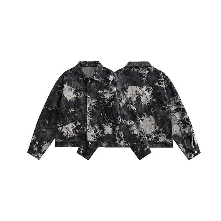 아메리칸 스타일 패션 브랜드 타이 염료 제거 디자인 짧은 데님 재킷 남성 레트로 느슨한 캐주얼 재킷 봄과 가을