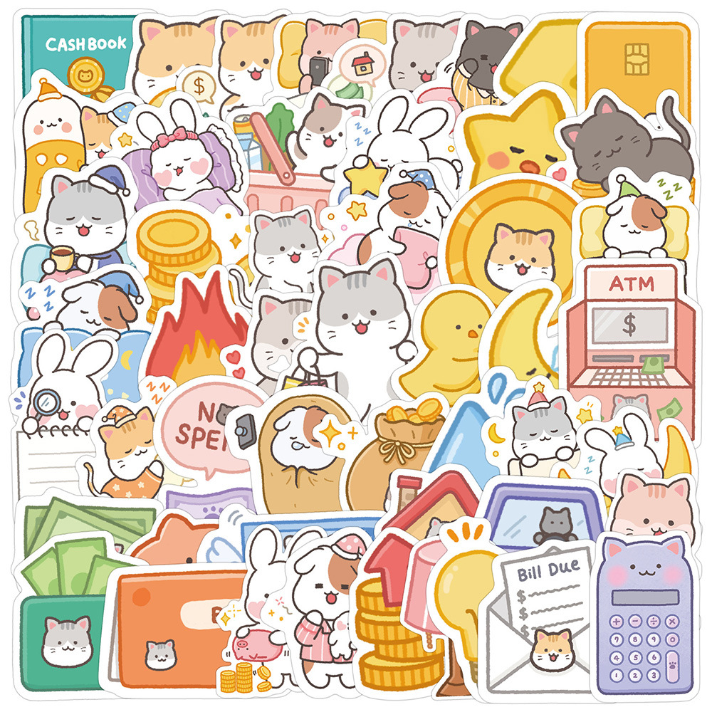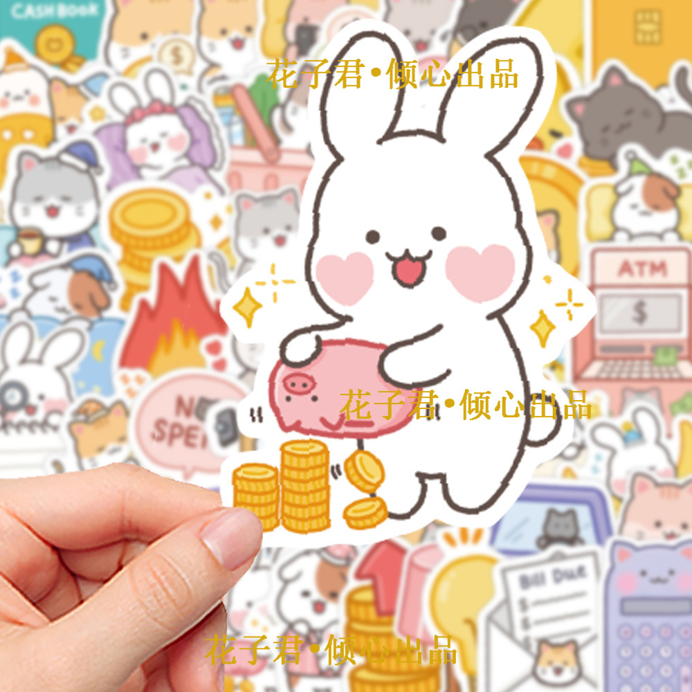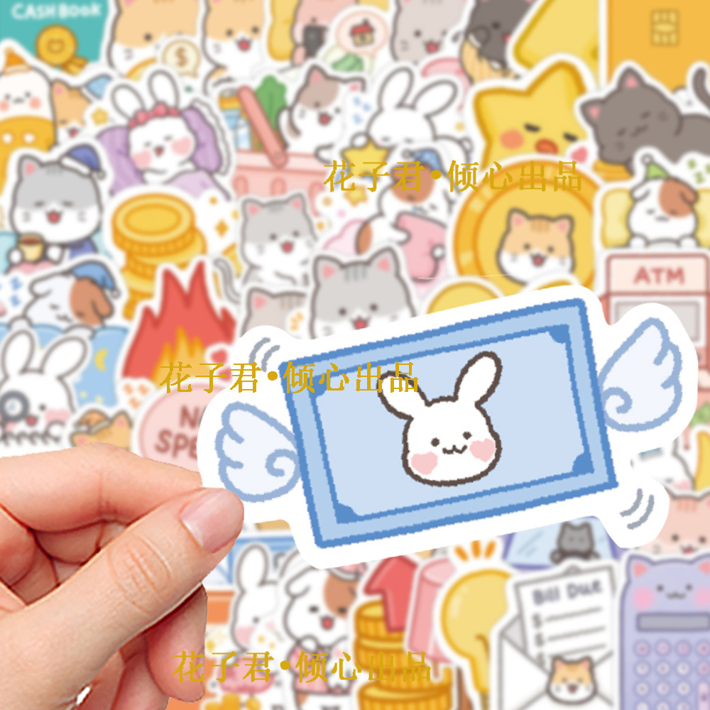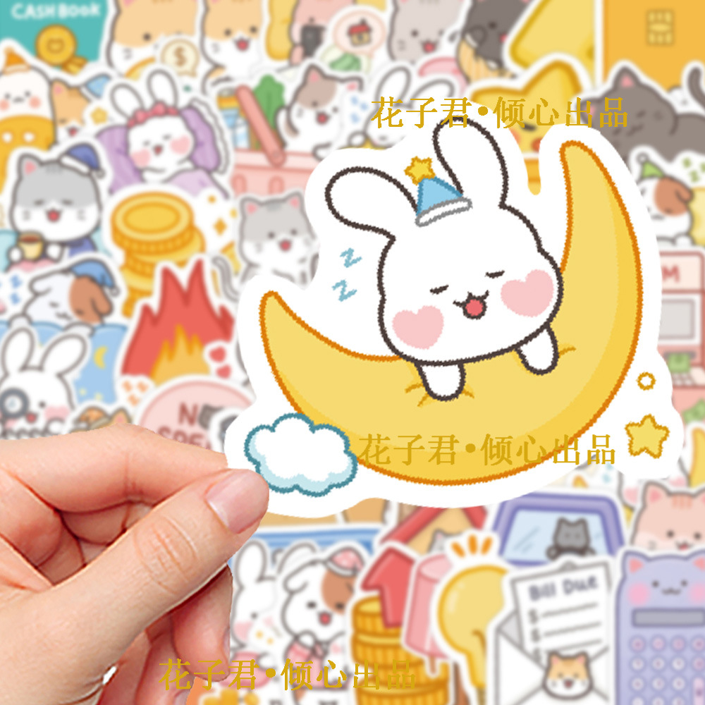 슈퍼 비용 효과적인 100 만화 귀여운 작은 야옹 토끼 스티커 바람 소녀 심장 휴대 전화 쉘 손 계정 배치스토어 가기