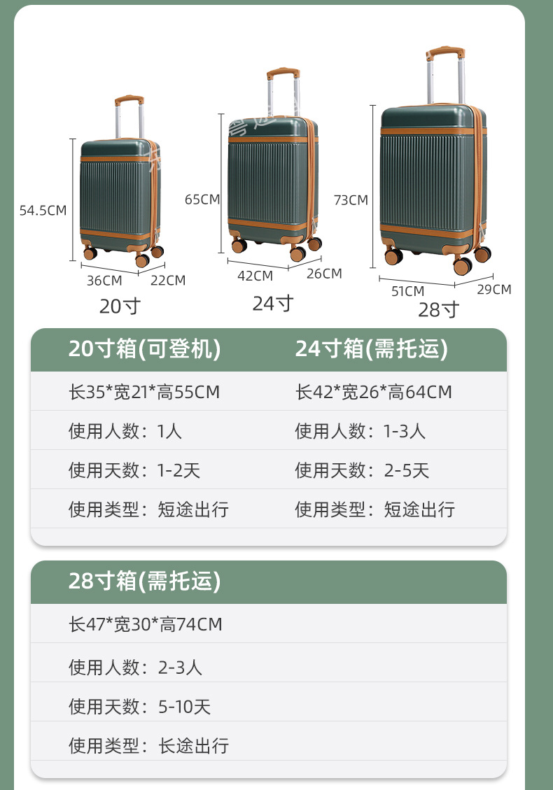유학생 24 인치 캐빈 박스 여성 경량 레트로 지퍼 트롤리 케이스 비즈니스 여행 대용량 수하물