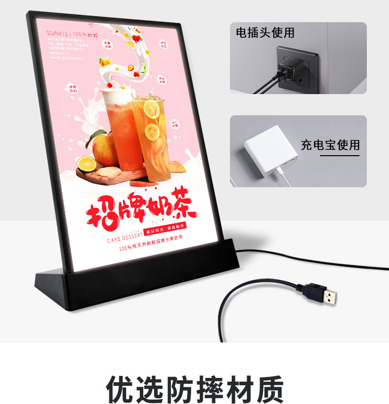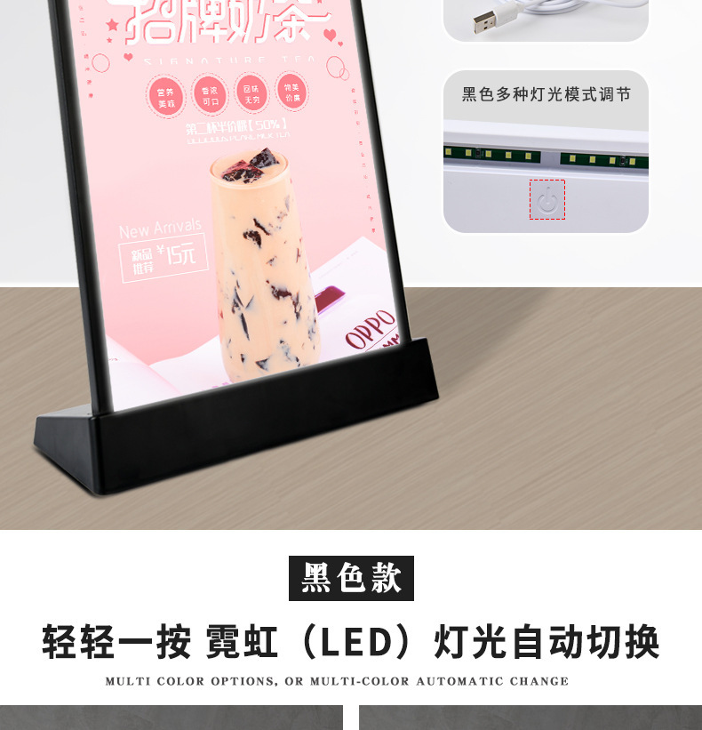 라이트 보드 led 빌보드 USB 충전 라이트 보드 광고 보드 우유 차 메뉴 디스플레이 보드 야시장 마구간 테이블 보드