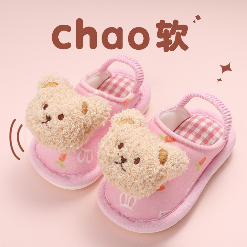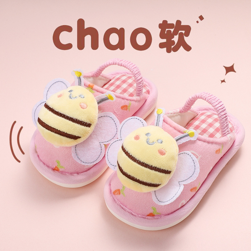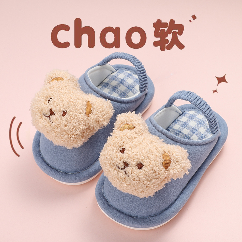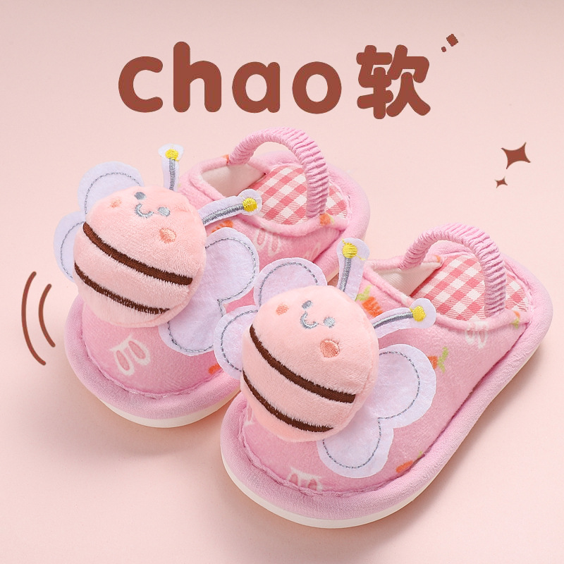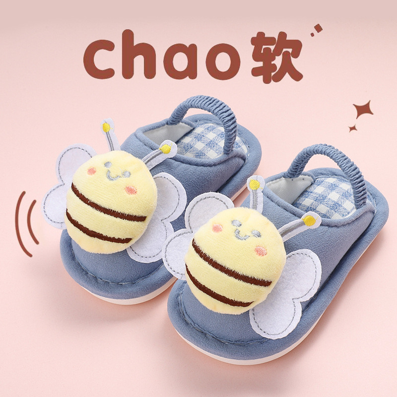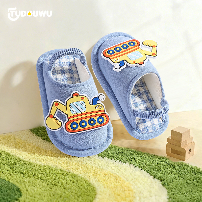 1-5세 아기용 천 슬리퍼, 어린이용 귀여운 면 슬리퍼, 가을 바닥 슬리퍼, 통기성 좋고 발이 차갑지 않은 슬리퍼스토어 가기