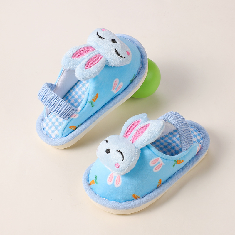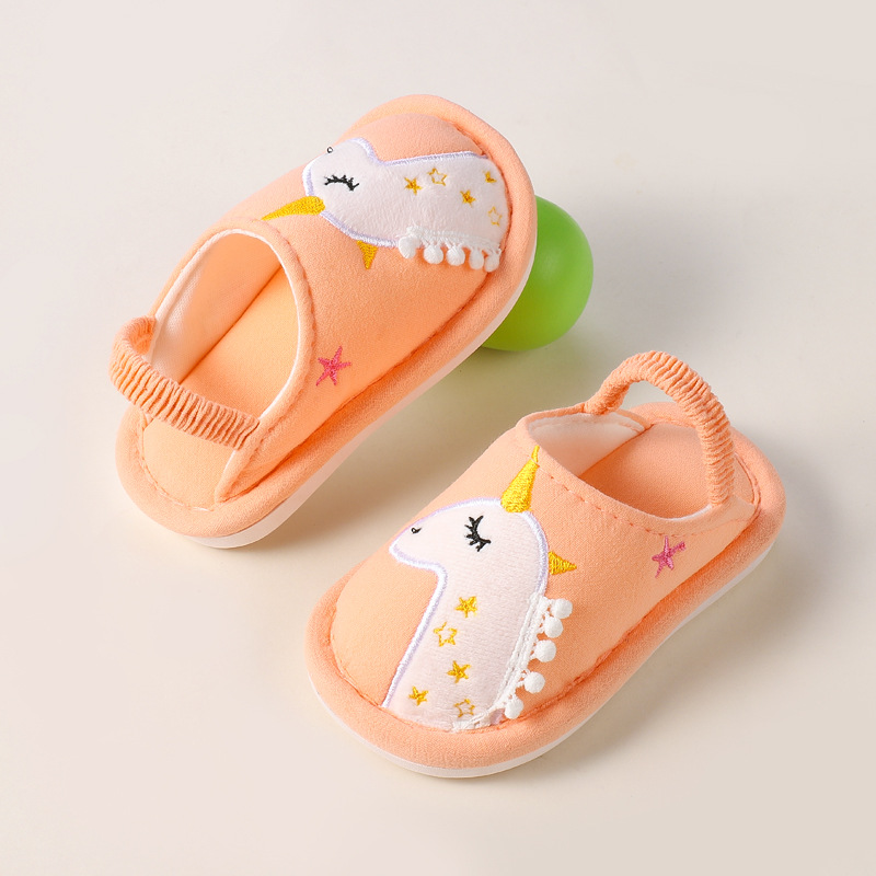 1-5세 아기용 천 슬리퍼, 어린이용 귀여운 면 슬리퍼, 가을 바닥 슬리퍼, 통기성 좋고 발이 차갑지 않은 슬리퍼