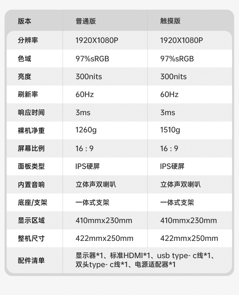 可开专票便携式显示屏双屏色域sRGB股票超薄TCLHDMO线接口刷新率144Hz17英寸