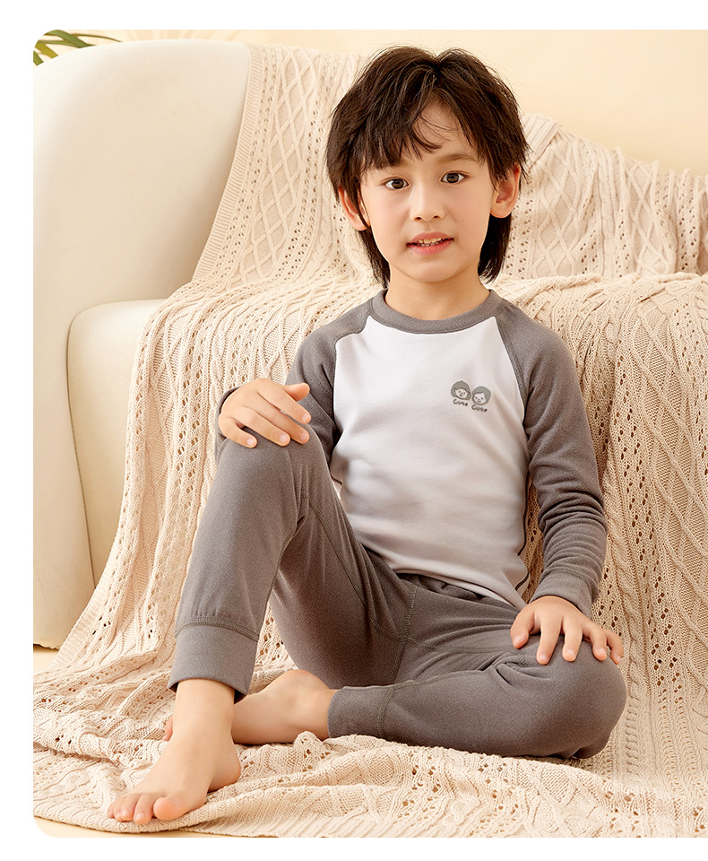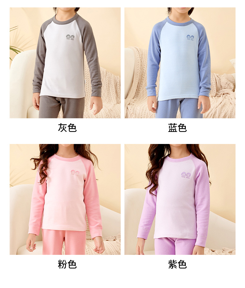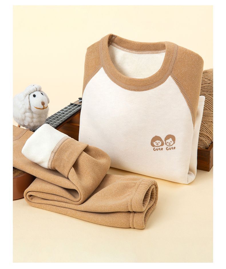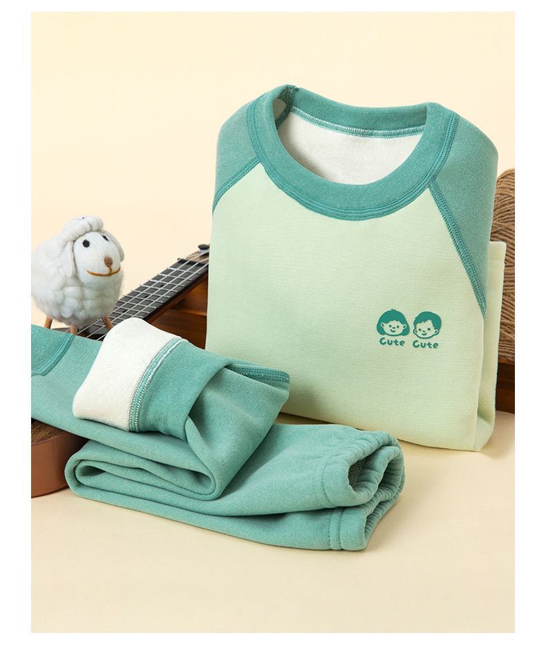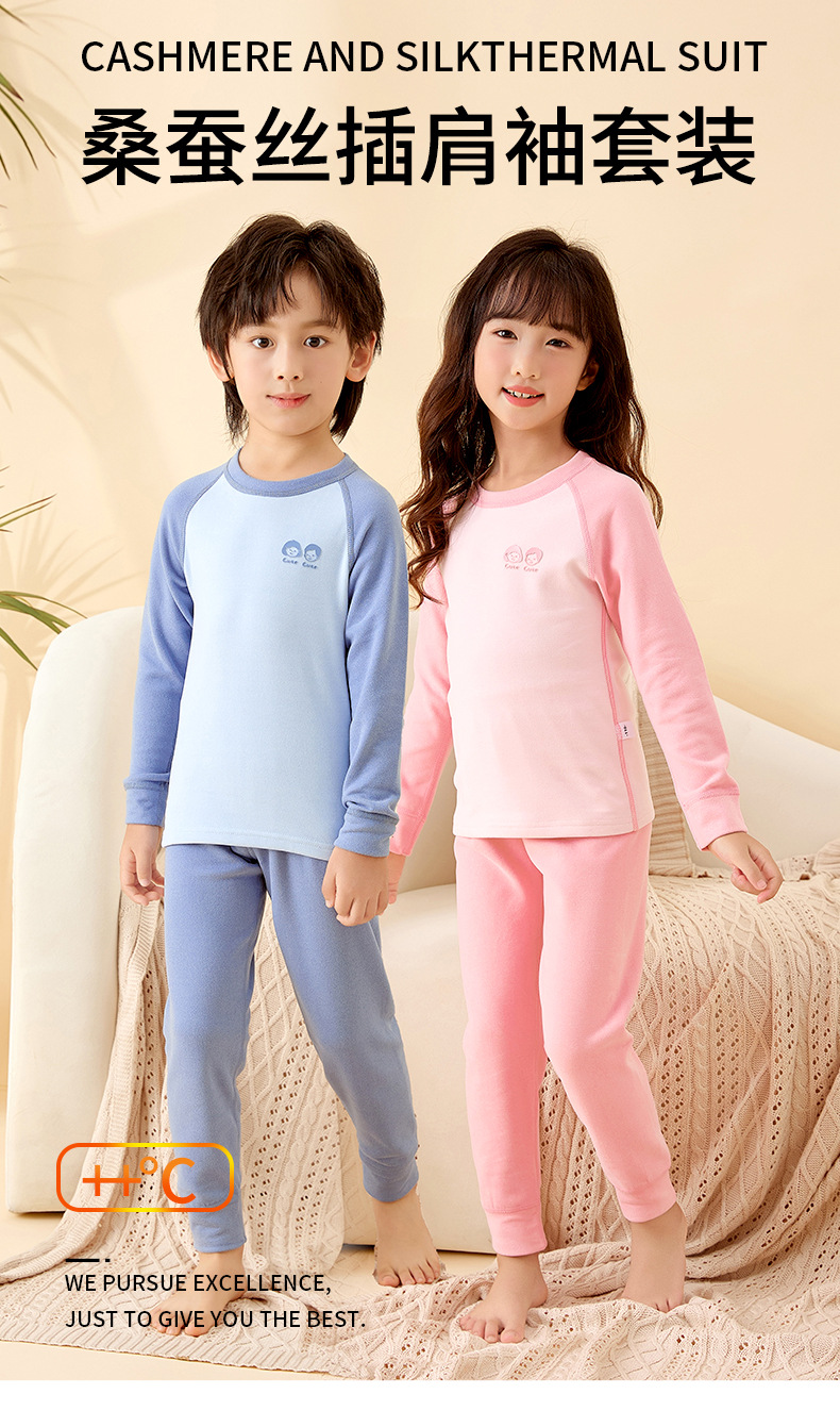 새로운 어린이용 보온 속옷 세트, 남녀 아기 및 중대형 어린이용 가을 겨울 양모와 실크 베이스 잠옷