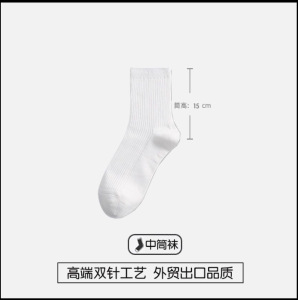 • 화이트 코튼 [종아리 중간 양말 23cm]