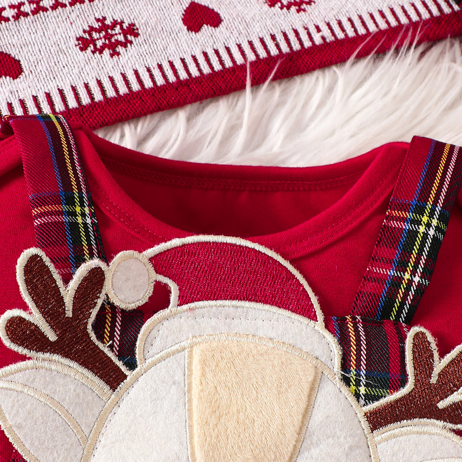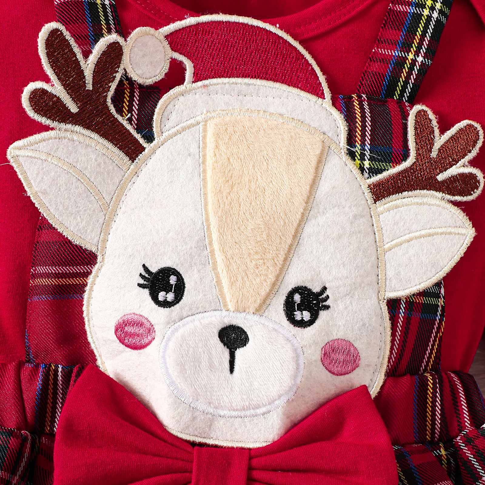 크리스마스 아동복 2024 가을 아기 소녀 새로운 긴 소매 토끼 엘크 마개 격자 끈 원피스 헤어 스트랩 세트스토어 가기