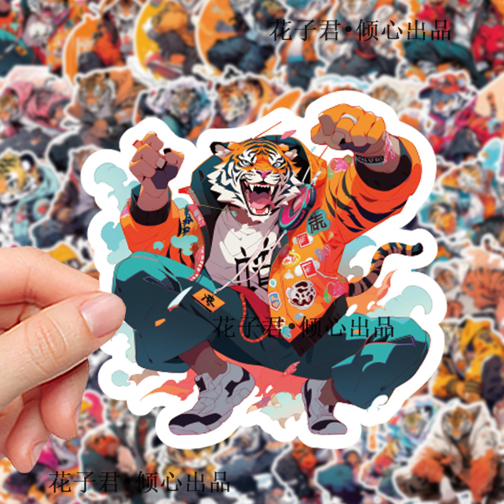 슈퍼 비용 효과적인 100 만화 호랑이 스티커 트렌드 잘 생긴 착용 동물 낙서 장식 수하물 배치스토어 가기