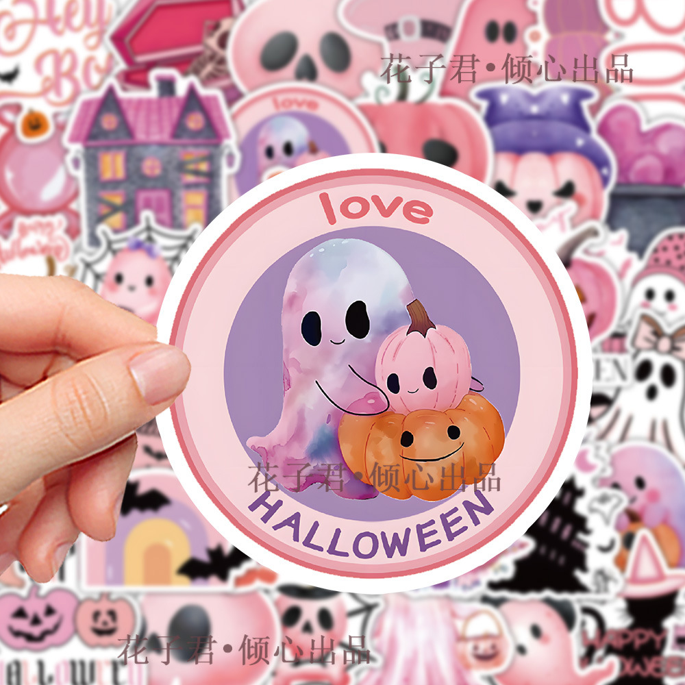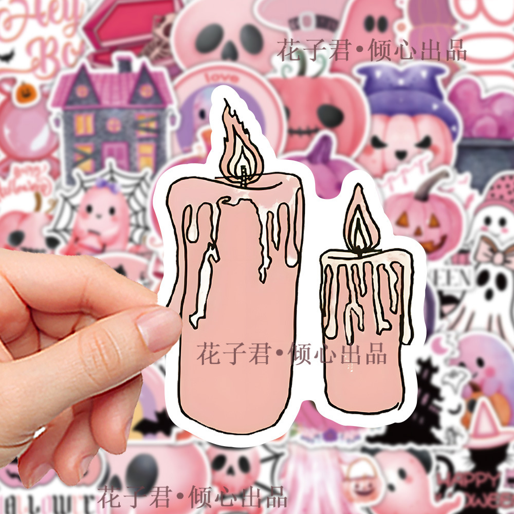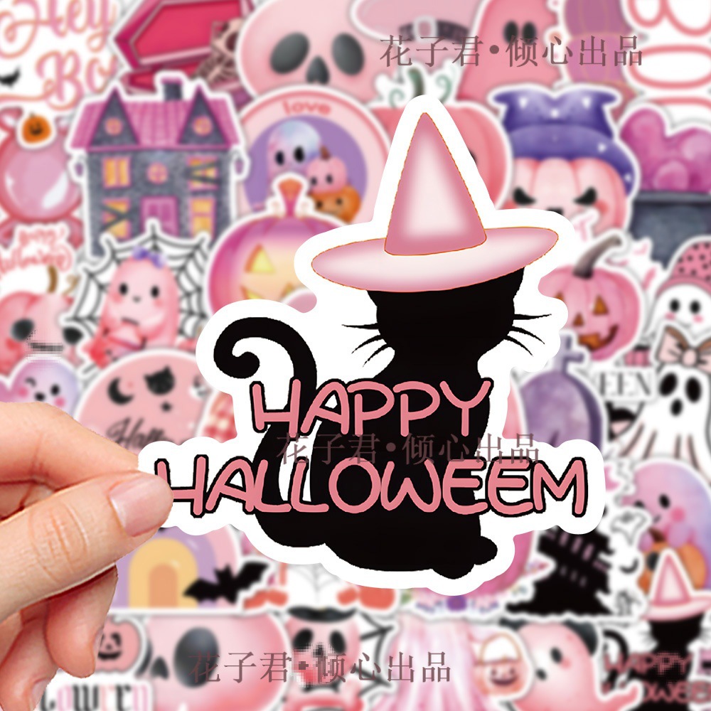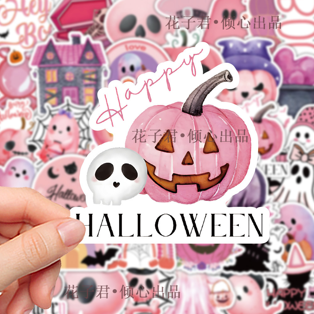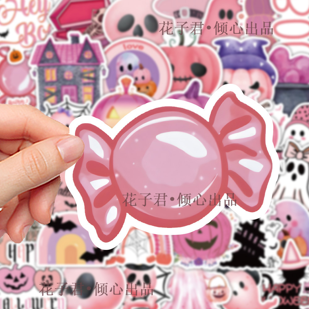 • 핑크 할로윈 스티커 52개-3-7CM/HD/접착제 포함