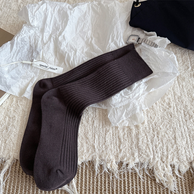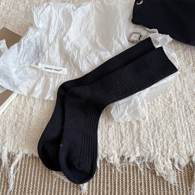 양말 여자 가을 겨울 단색 중간 길이 양말 컬러 스핀 인 한국 스타일 드로우 다운 스타킹 올 매치 노드롭 스태킹 스타킹 여성용 양말