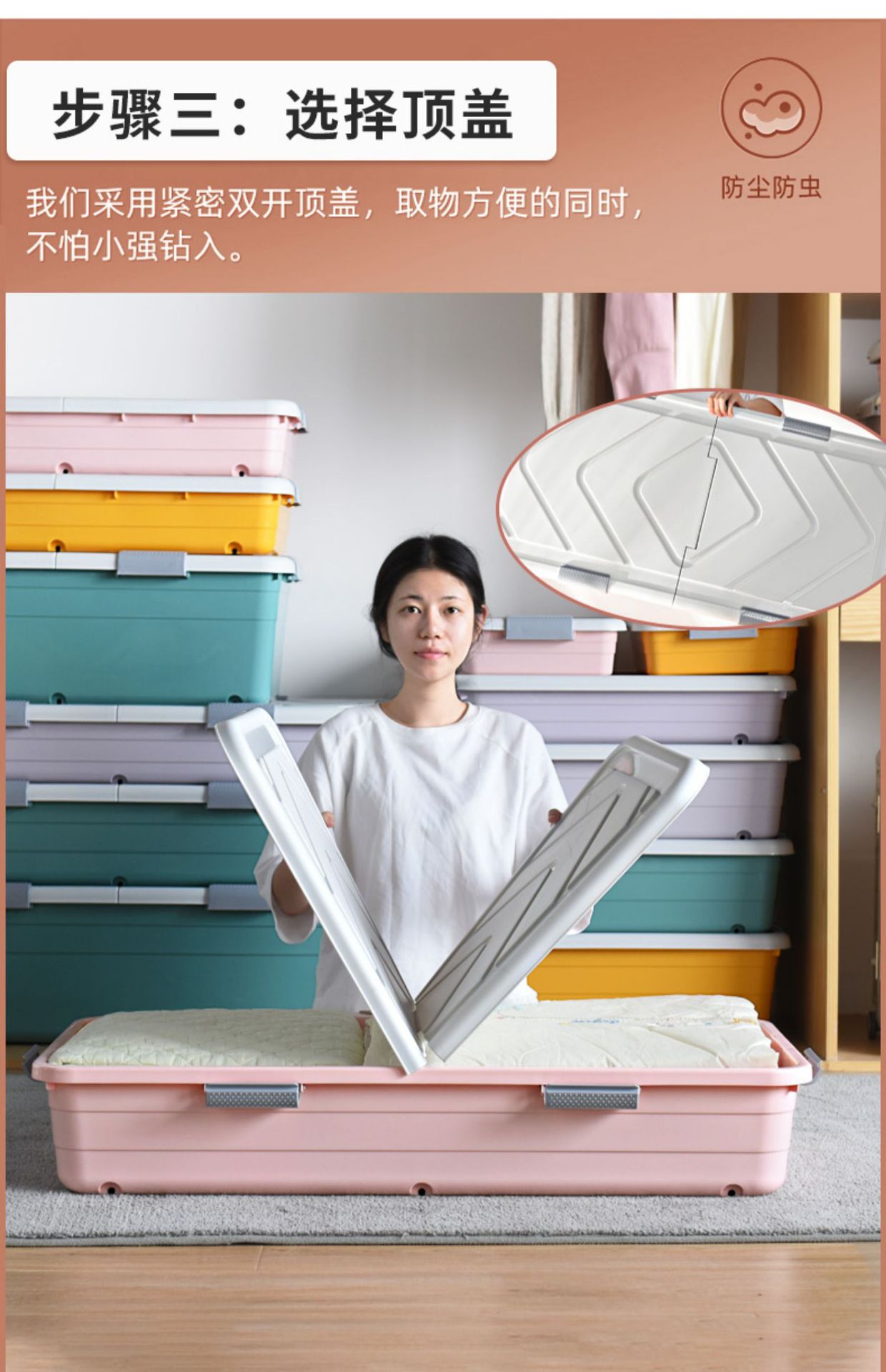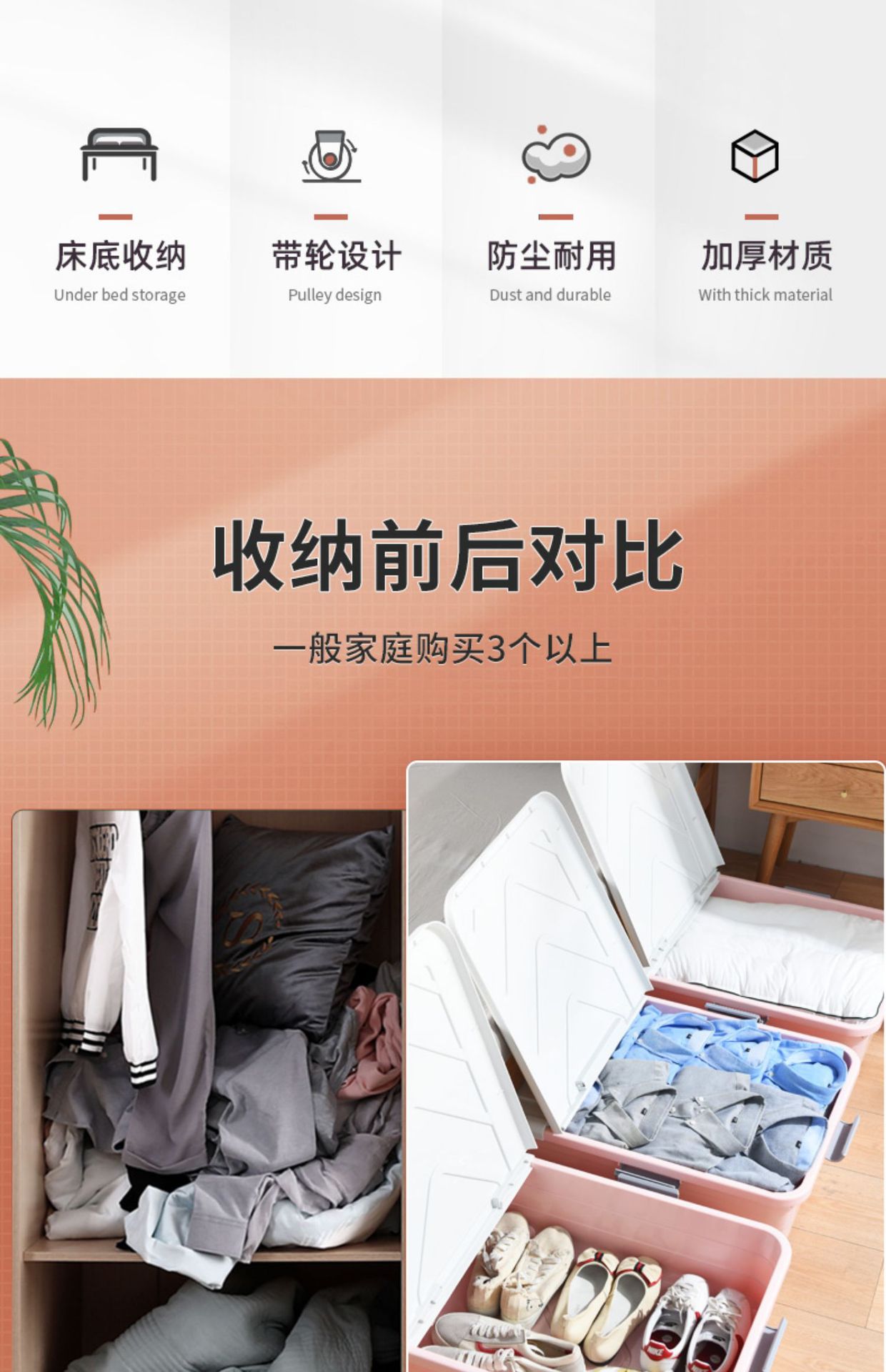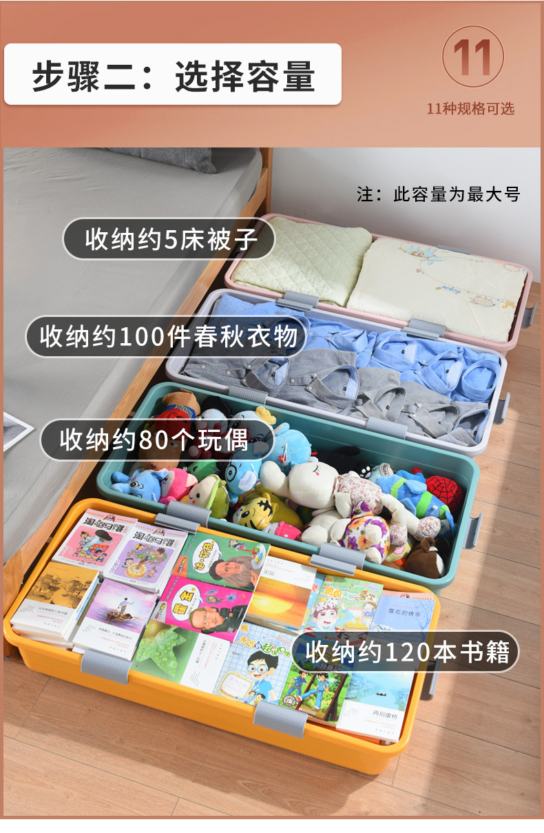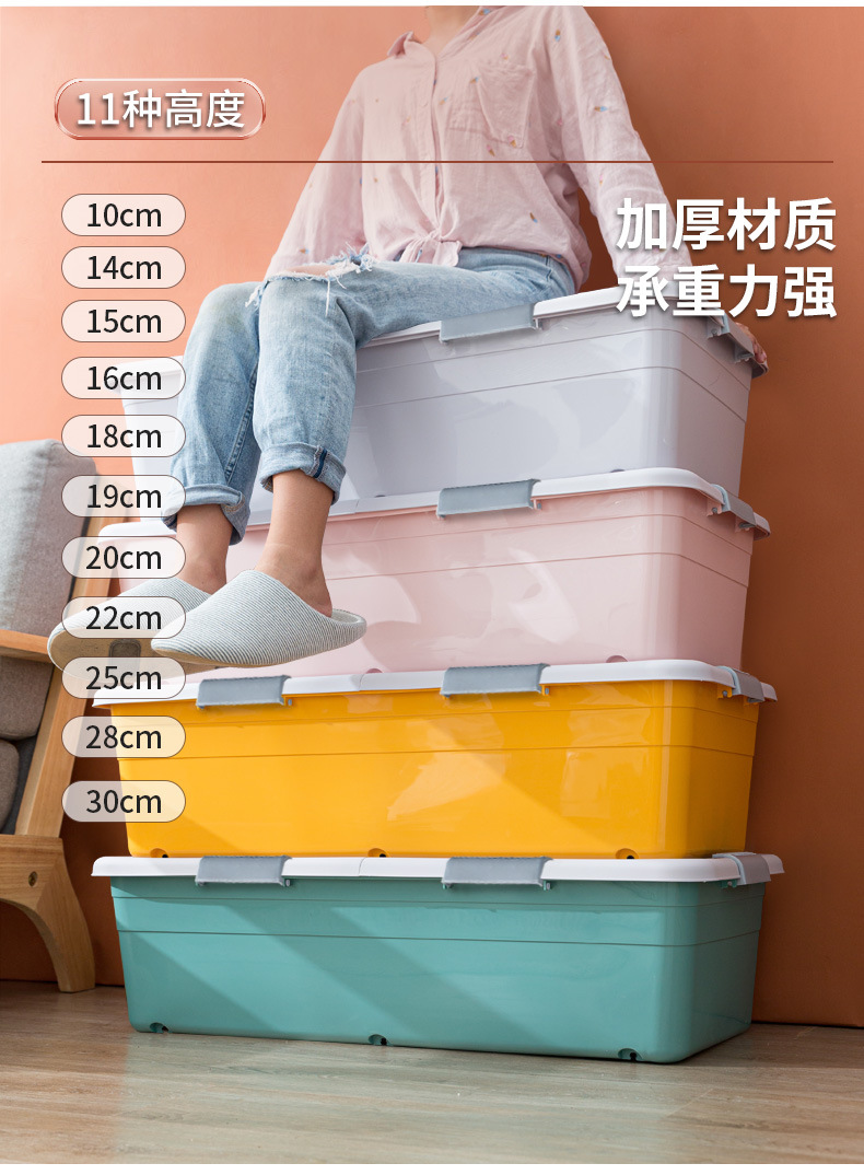 침대 아래 보관 상자 가정용 여분의 대형 이불 꼬임 상자 옷 보관 용 바퀴와 뚜껑이 달린 침대 아래 보관 상자스토어 가기