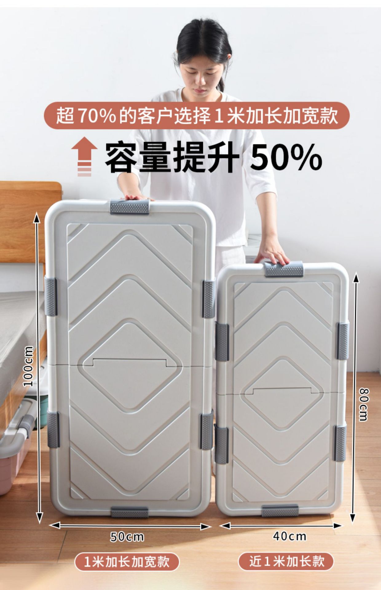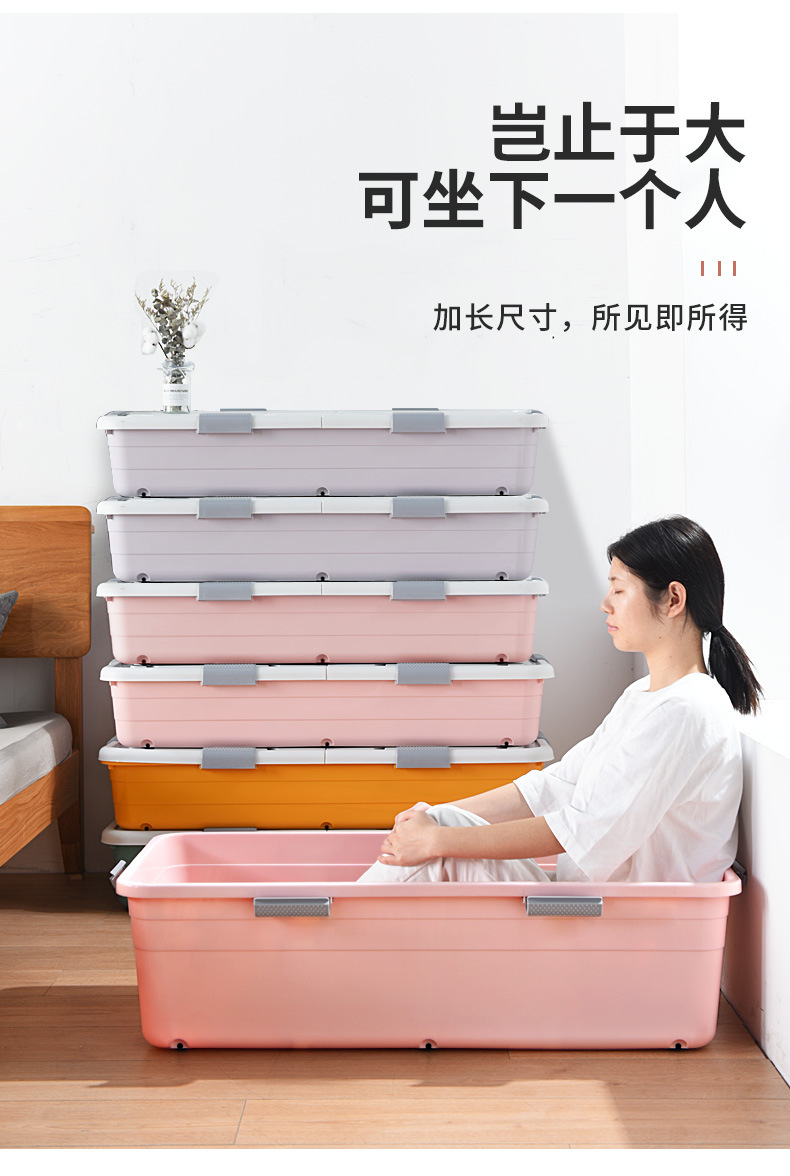침대 아래 보관 상자 가정용 여분의 대형 이불 꼬임 상자 옷 보관 용 바퀴와 뚜껑이 달린 침대 아래 보관 상자
