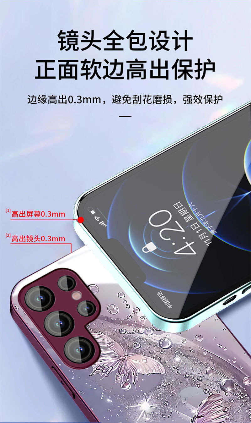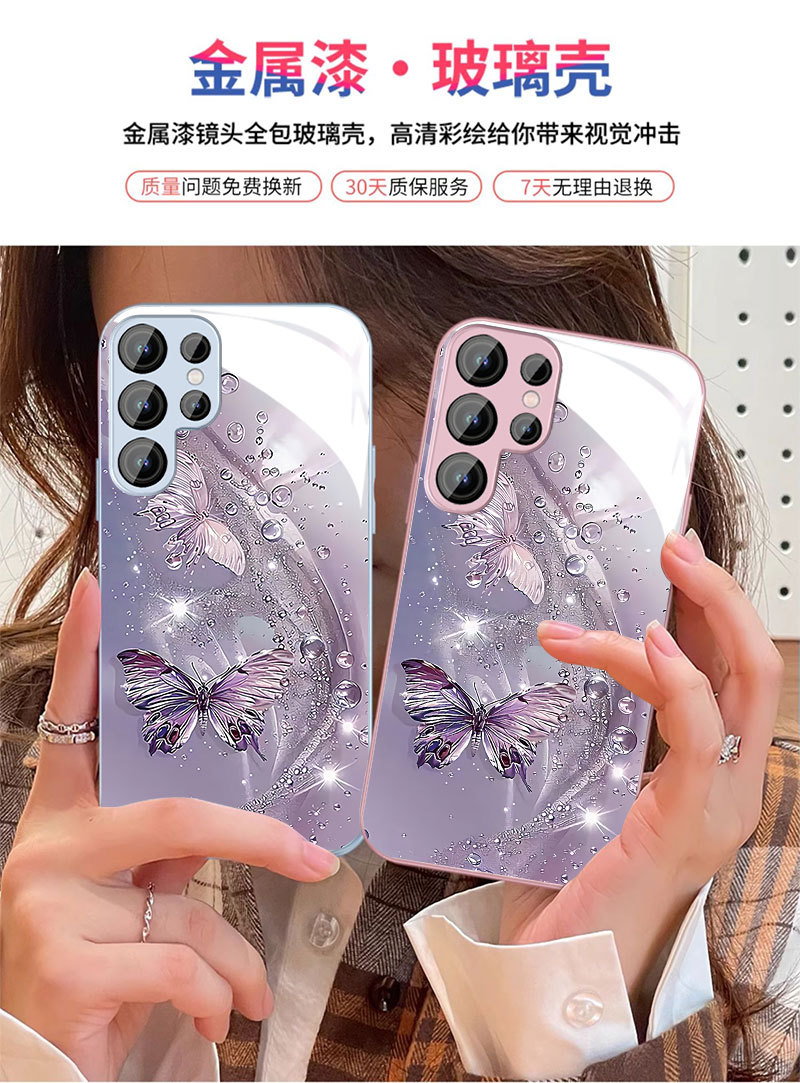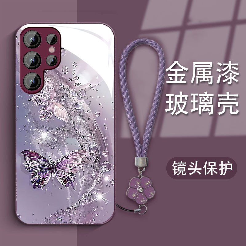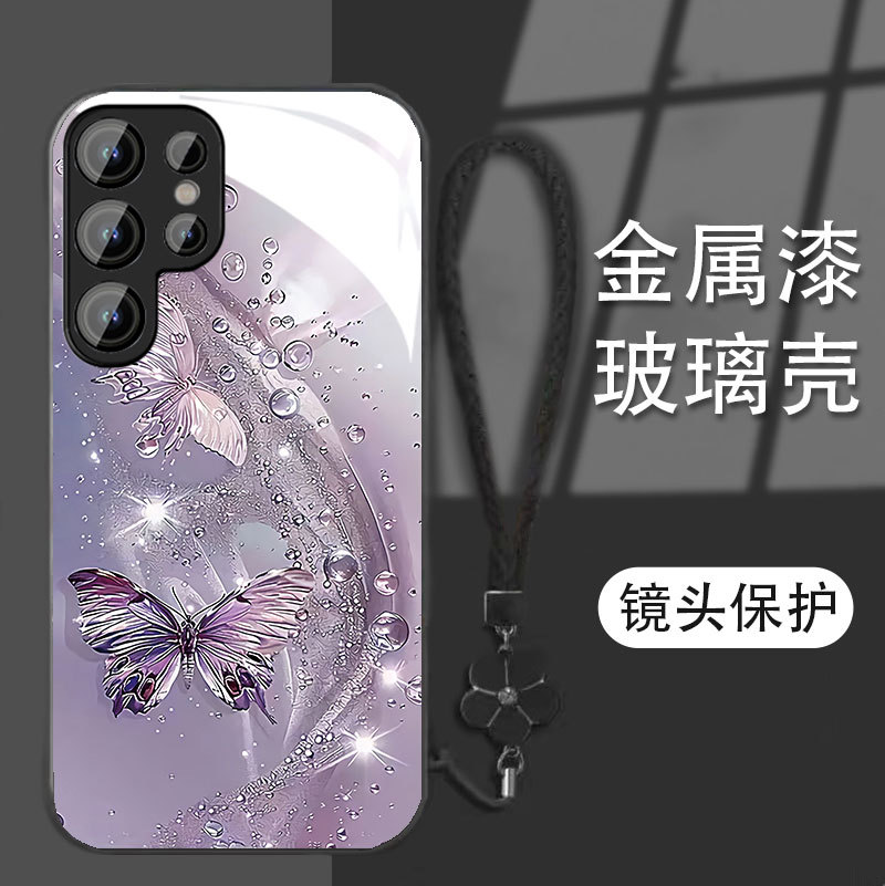 물방울 나비 삼성 S24ULTRA 유리 전화 케이스 s23PLUS 인터넷 빨간색 s22 폭발 A55스토어 가기