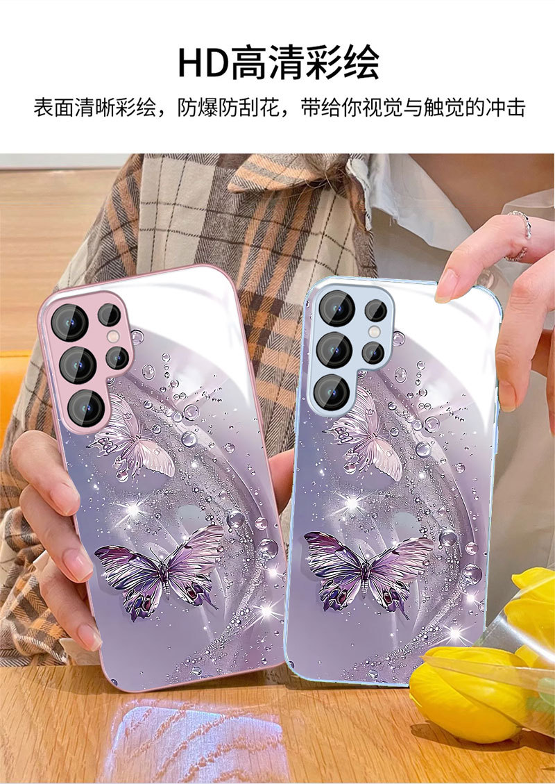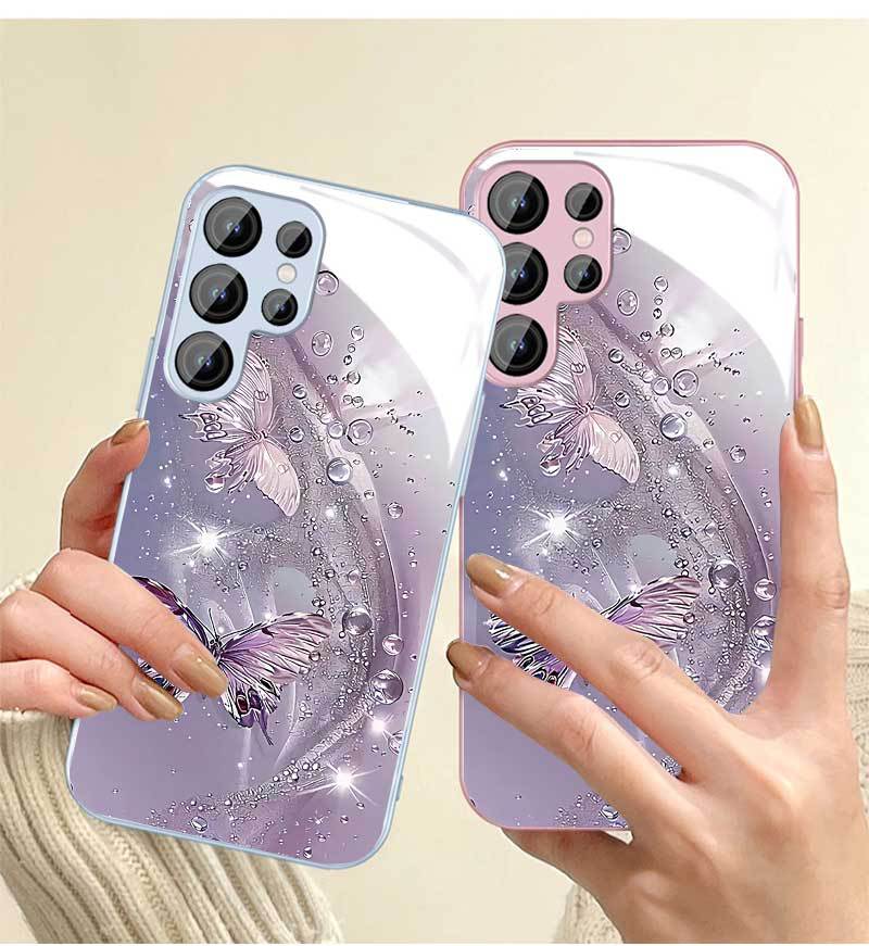 물방울 나비 삼성 S24ULTRA 유리 전화 케이스 s23PLUS 인터넷 빨간색 s22 폭발 A55