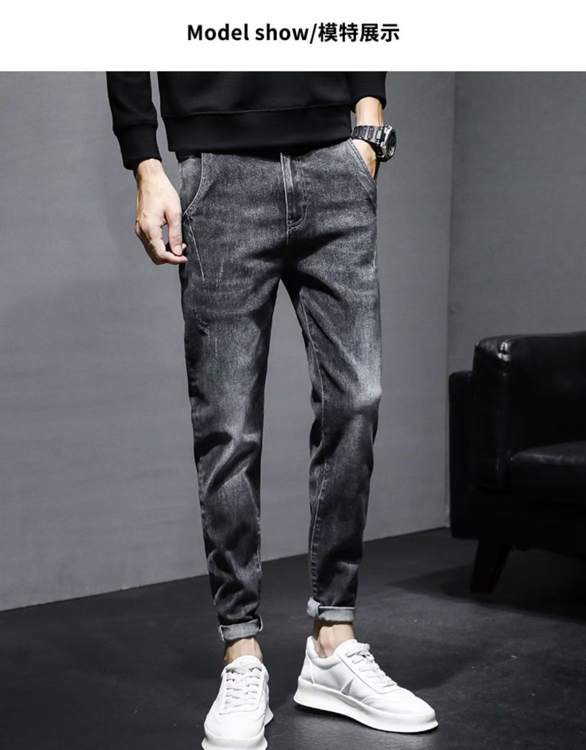 트렌디 한 브랜드 슬림 핏 청바지 남성 한국 스타일 스키니 피트 트렌디 2024 봄과 가을 새로운 캐주얼 스트레치 스트레이트 긴 바지스토어 가기