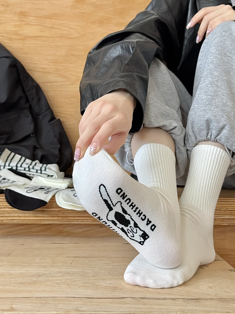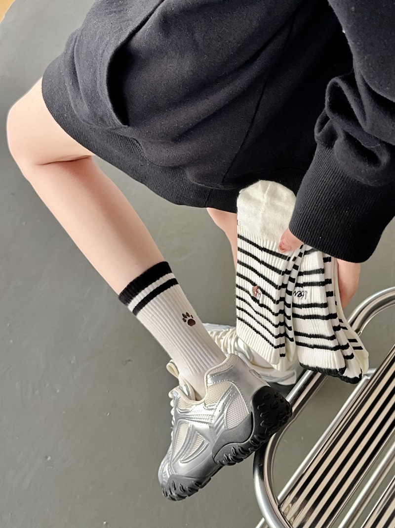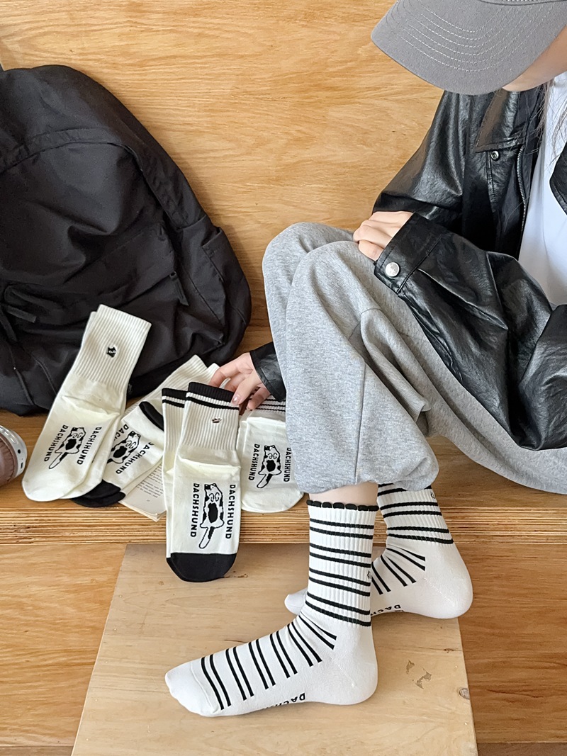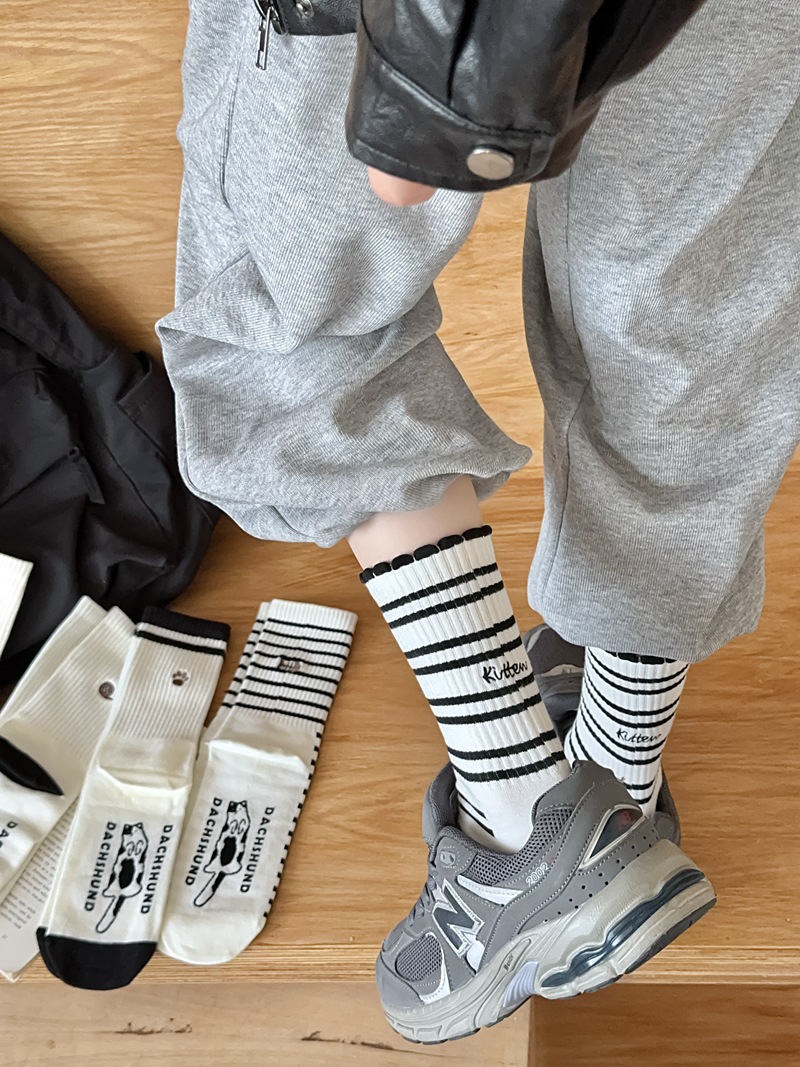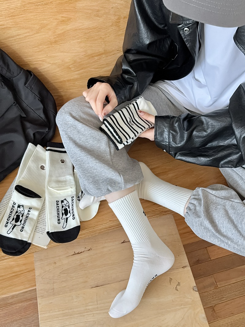 2024 초기 가을 새로운 한국 스타일 흑백 스포츠 높은 고무 자수 중간 튜브 강아지 캐주얼 통기성 미드 튜브 양말스토어 가기