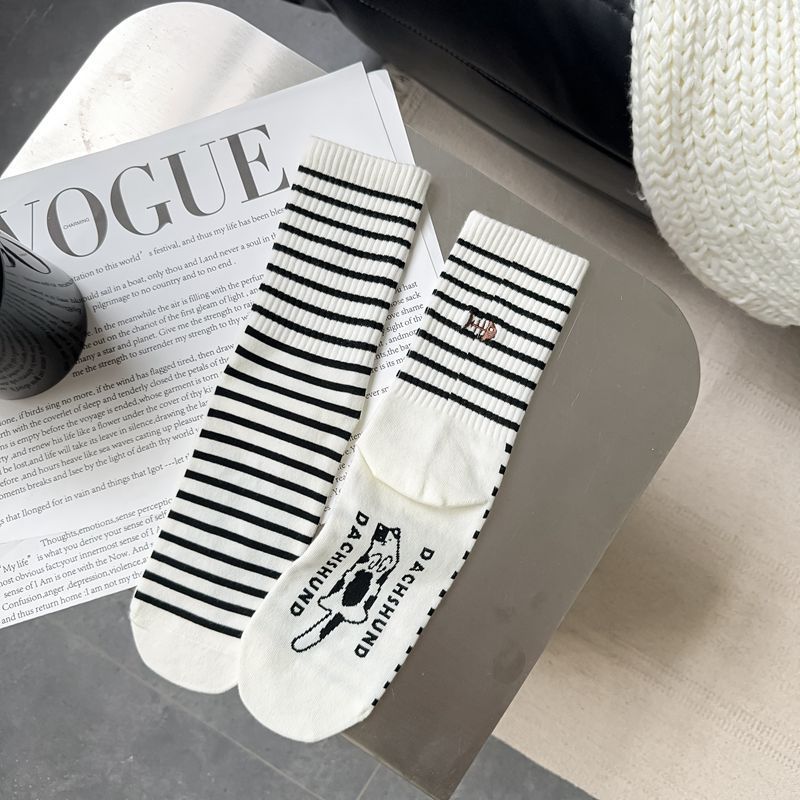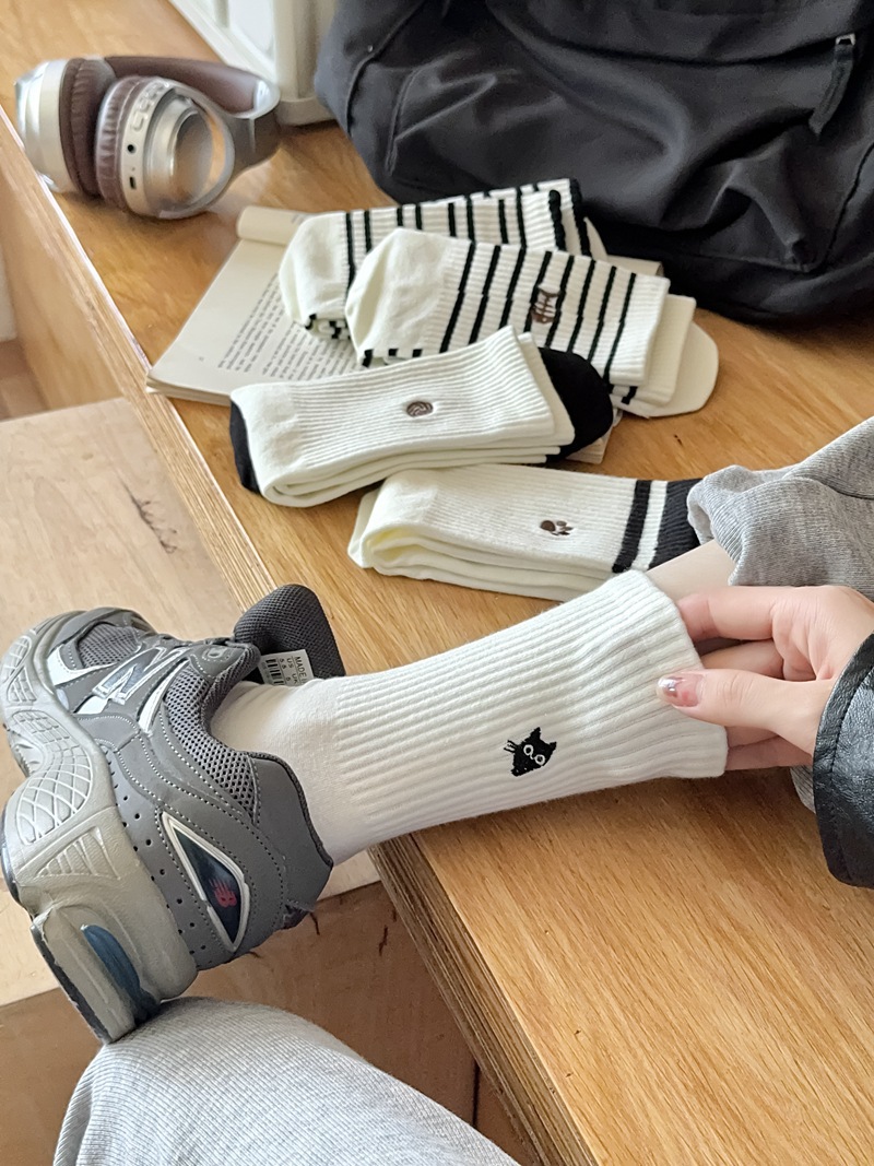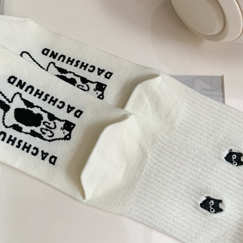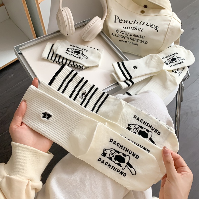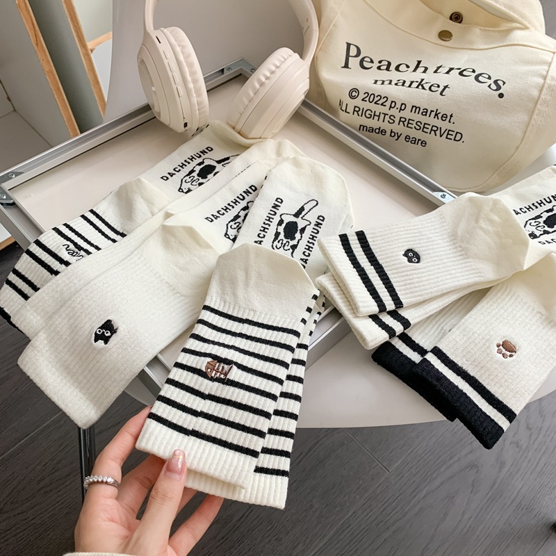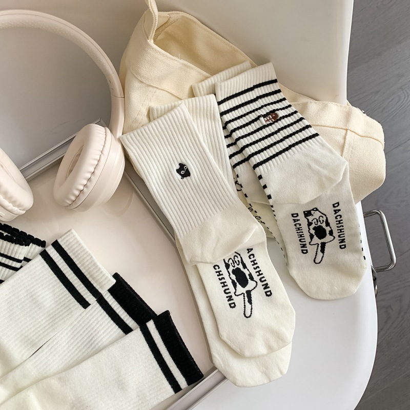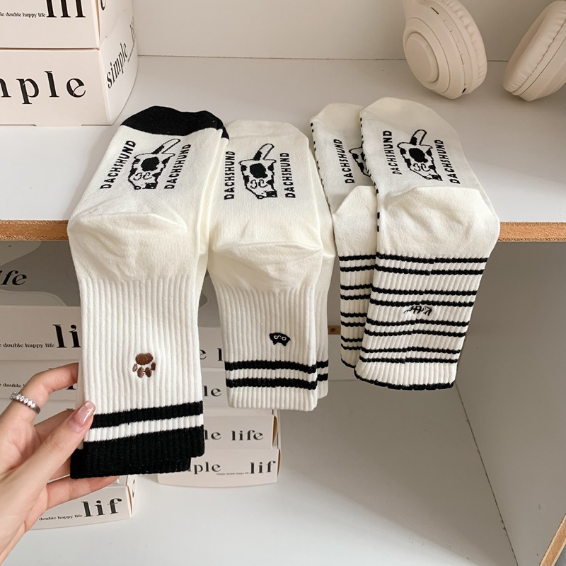 2024 초기 가을 새로운 한국 스타일 흑백 스포츠 높은 고무 자수 중간 튜브 강아지 캐주얼 통기성 미드 튜브 양말스토어 가기