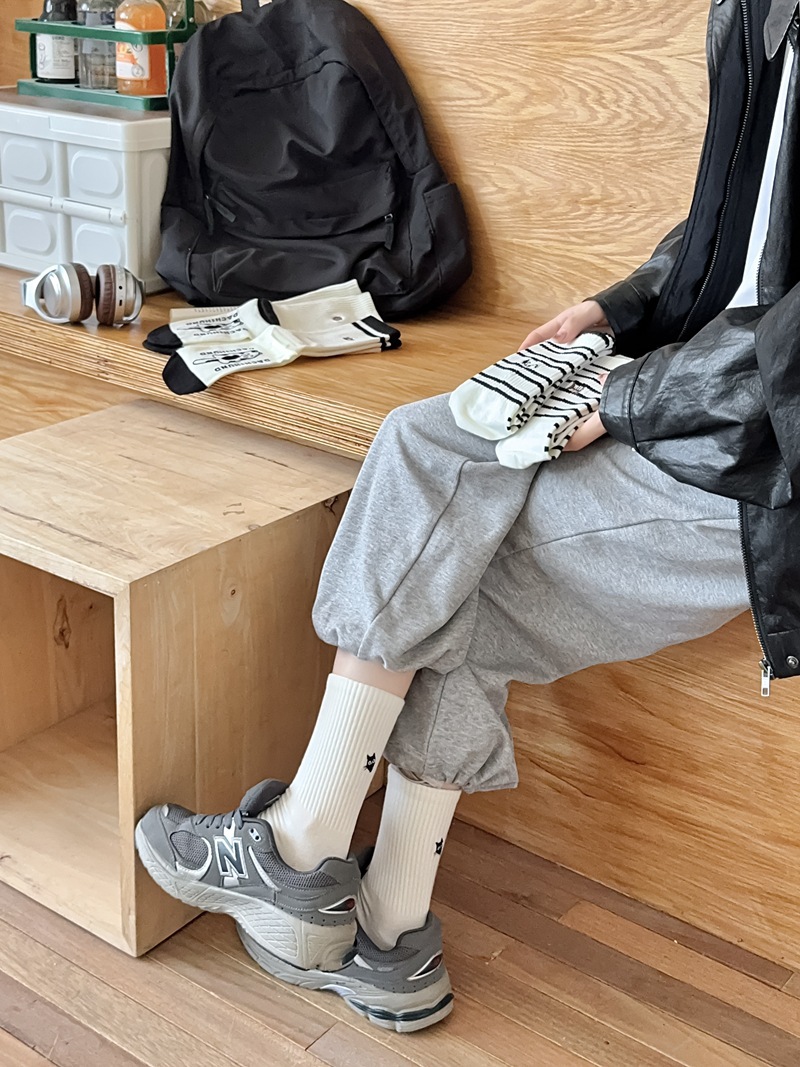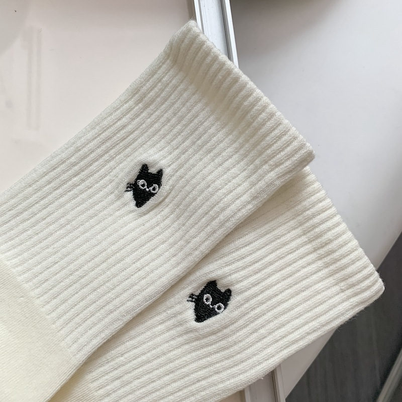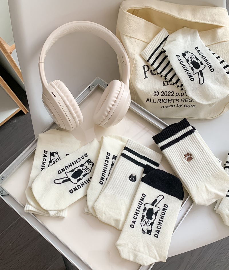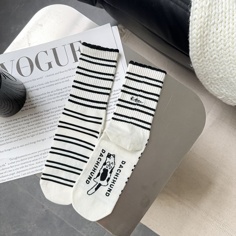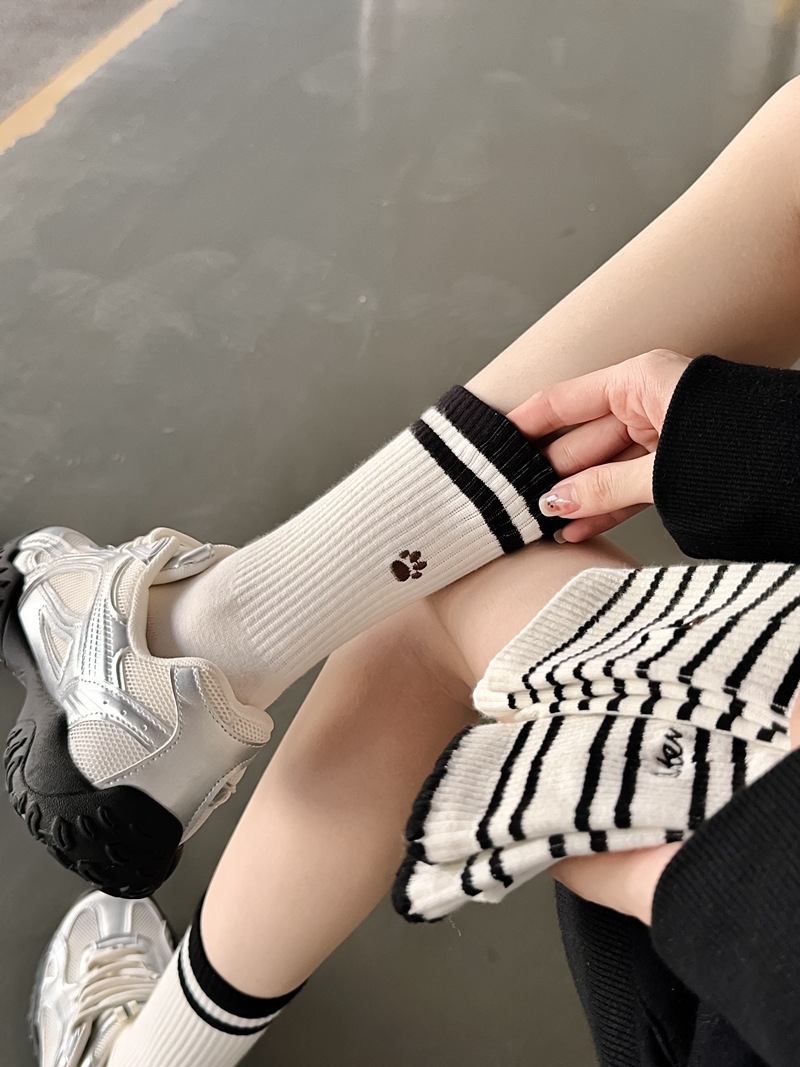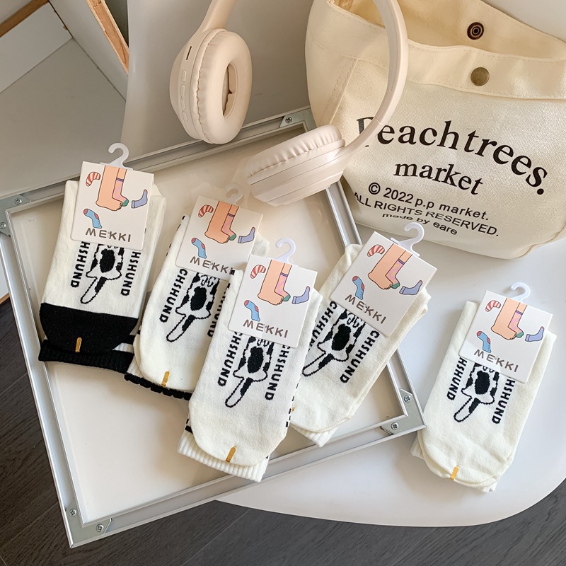 2024 초기 가을 새로운 한국 스타일 흑백 스포츠 높은 고무 자수 중간 튜브 강아지 캐주얼 통기성 미드 튜브 양말스토어 가기