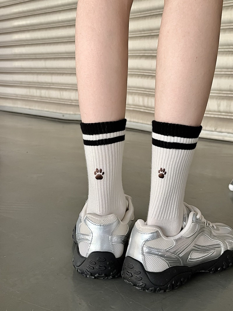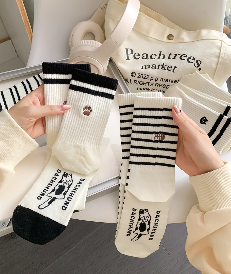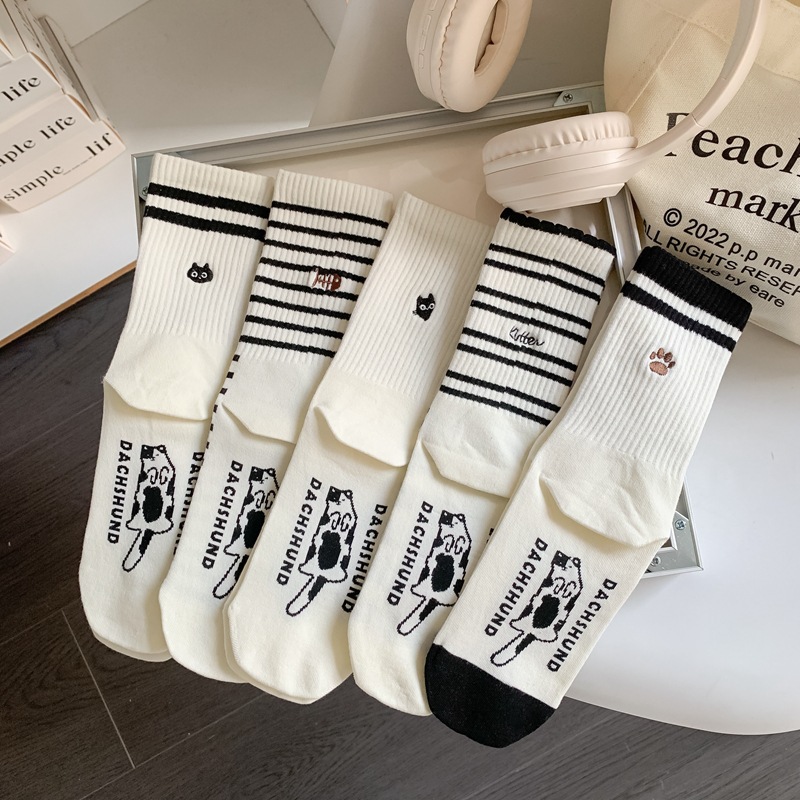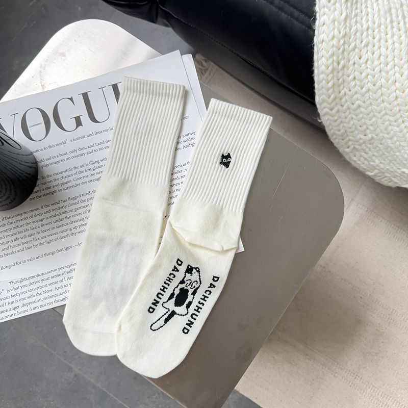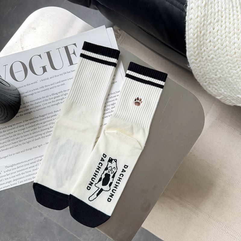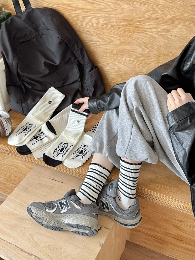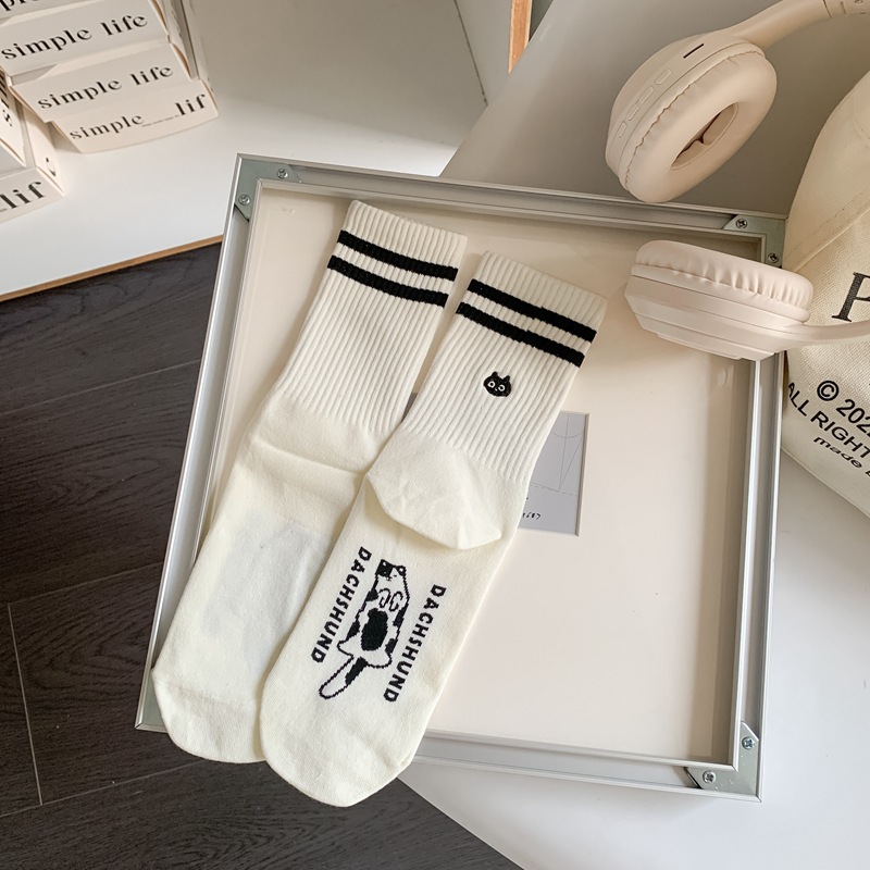 2024 초기 가을 새로운 한국 스타일 흑백 스포츠 높은 고무 자수 중간 튜브 강아지 캐주얼 통기성 미드 튜브 양말
